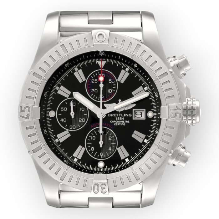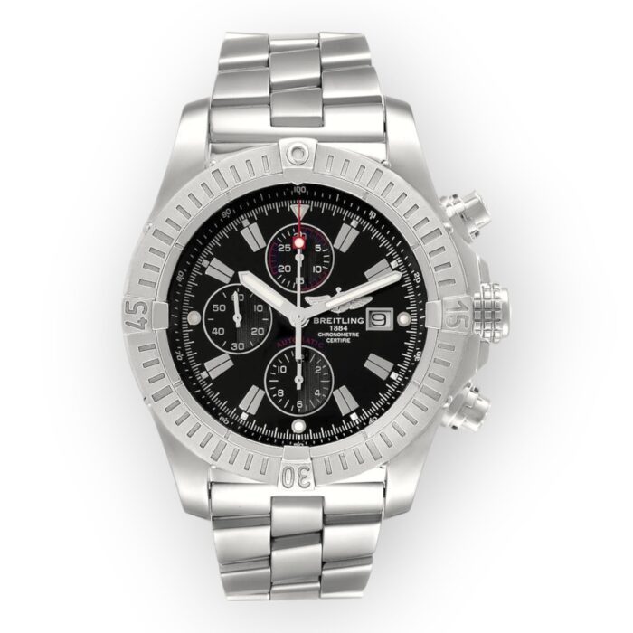 Breitling Super Avenger A13370 Black Dial Chronograph Steel Mens Watch
