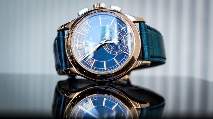 Patek Philippe Complications 5905R-010 – Rose Gold with Blue Sunray Dial & Alligator Strap
