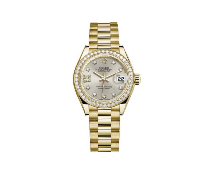 Rolex Lady-Datejust 28 – Yellow Gold with Diamond Bezel & Silver Dial Ref. 279138RBR