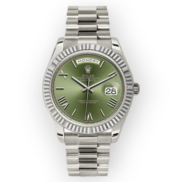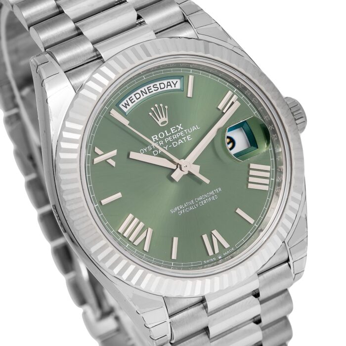 Rolex White Gold Day-Date 40 Watch Olive Green Roman Dial – President Bracelet 228239