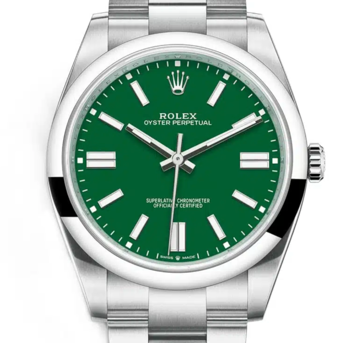 Rolex Oyster Perpetual 124300-0005 – Green Dial with Smooth Bezel and Stainless Steel Oyster Bracelet