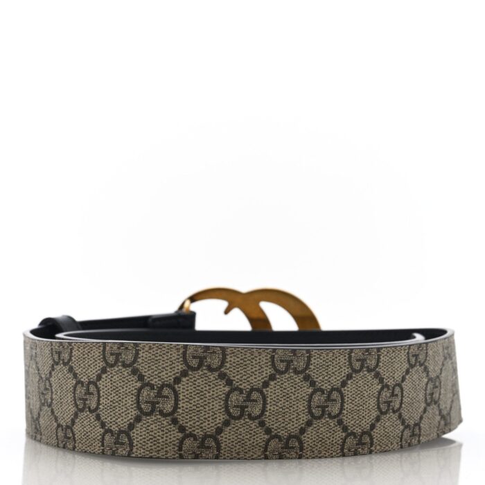 GG Supreme Monogram Matte Plutone Calfskin Double G 40mm Belt 80 32 Beige Ebony Black
