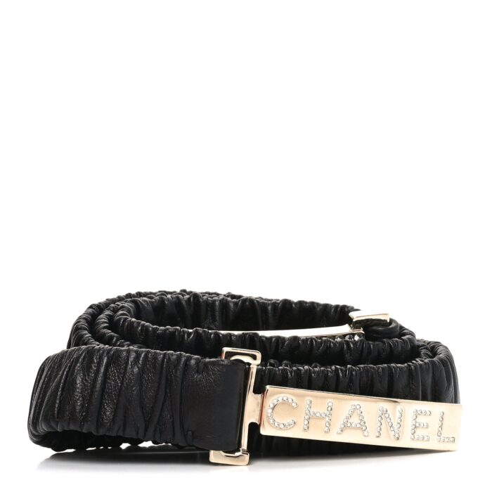 Lambskin Crystal Logo Belt 95 38 Black Gold