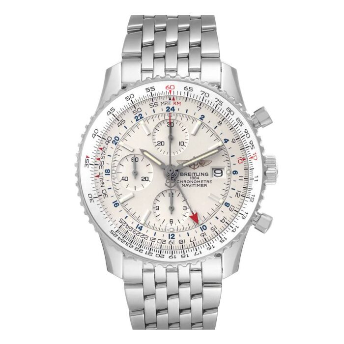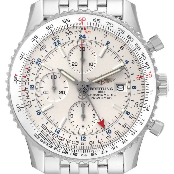 Breitling Navitimer World GMT A24322 Silver Dial Steel Mens Watch