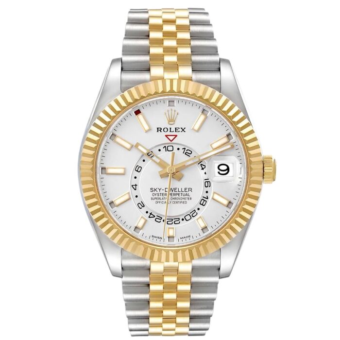 Rolex Sky Dweller Stainless Steel and Yellow Gold Jubilee Bracelet White Dial 326933