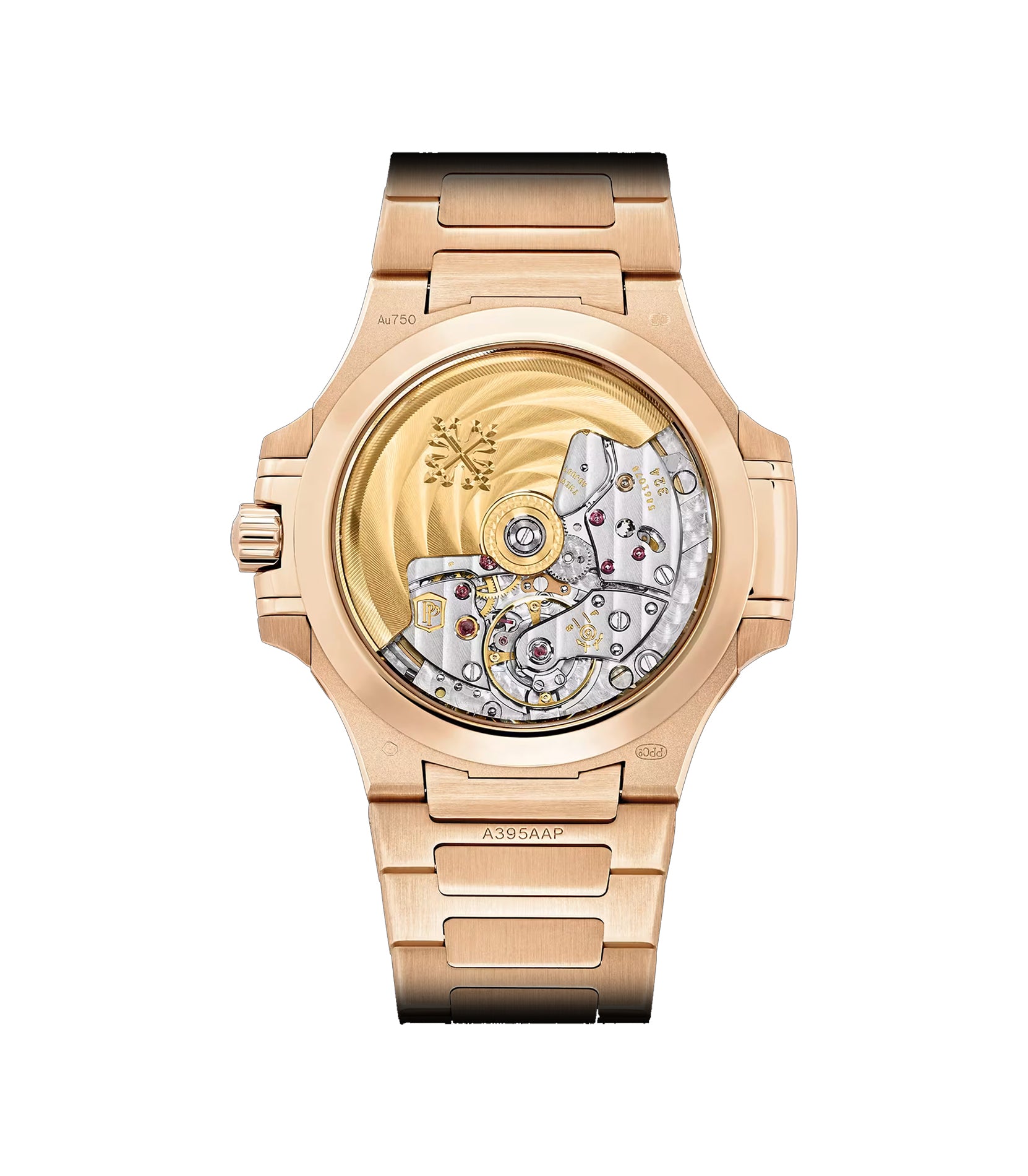 Functions are displayed on a golden brown opaline wave pattern dial that is accompanied by luminescent filled hands as well as luminescent filled markers. The dial also features a date aperture at 6’o clock.