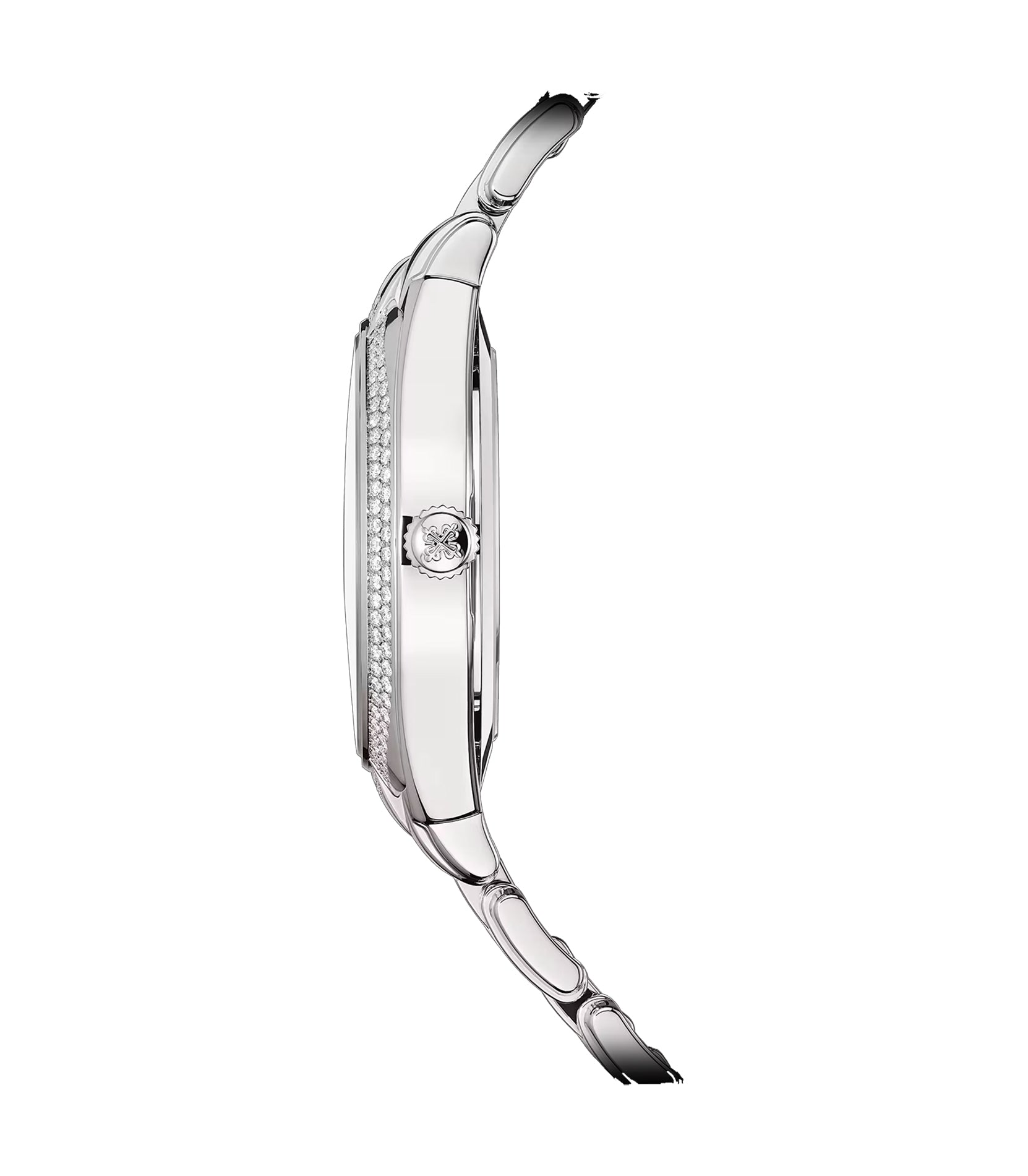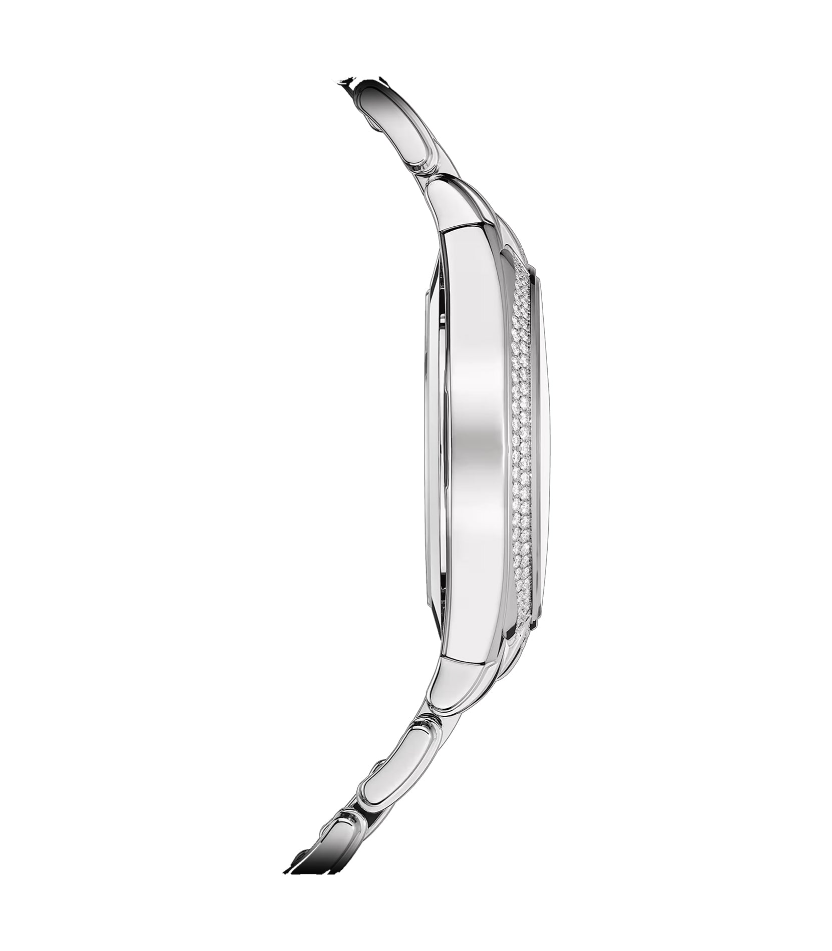 Case is made of mirror finished stainless steel as is the bracelet mounted on the watch. The bezel is set with a total of 160 diamonds, weighing about 0.81 ct.