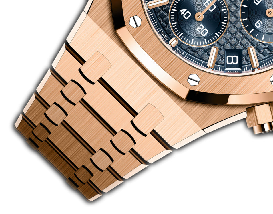 标签: 18K Rose gold, 26240OR, 26240OR.OO.1320OR.05, 41mm, AP, audemars-piguet, Blue Dial, bracelet, chrono, Chronograph, Rose Gold, royal-oak
