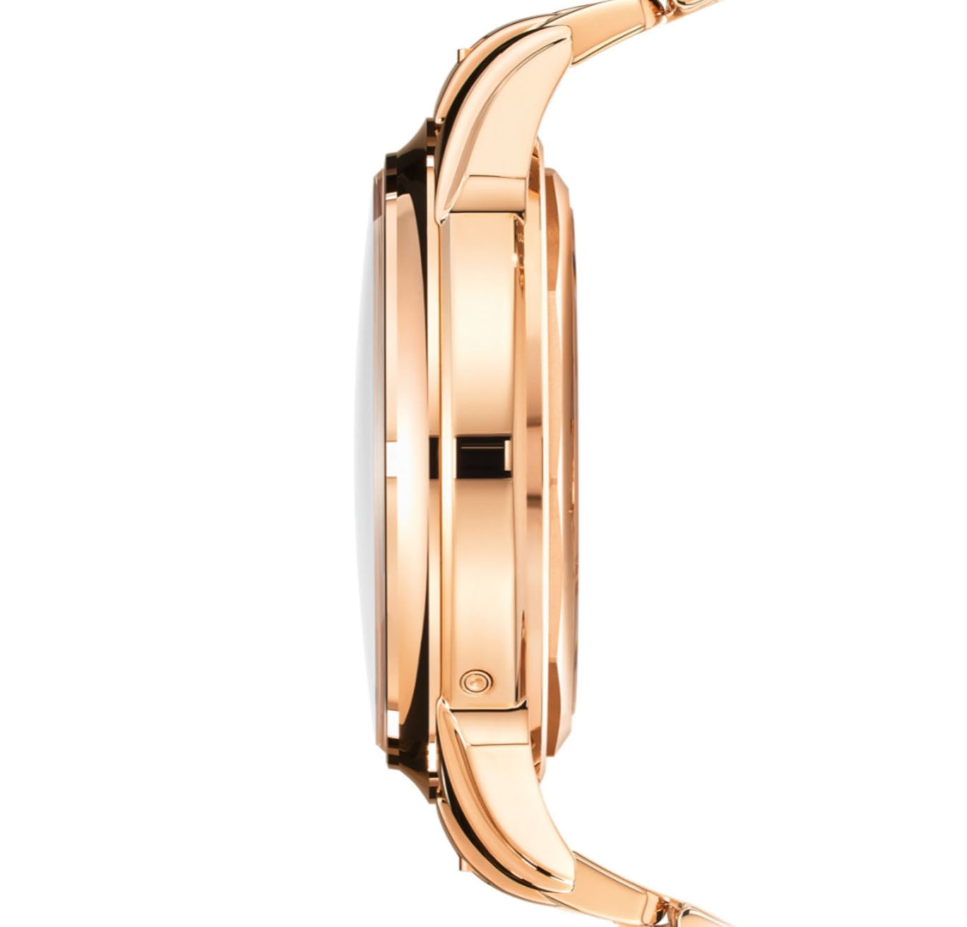 Case, bezel and bracelet are all made of high-polish finished 18k rose gold with a transparent sapphire crystal case back.