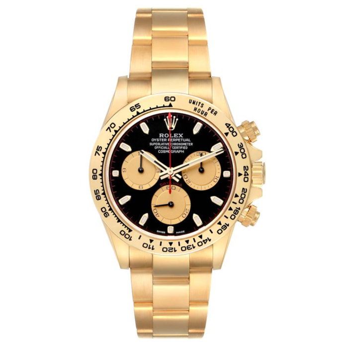 Functions are displayed on a black dial with index markers. Functions shown are hours, minutes, seconds and date.