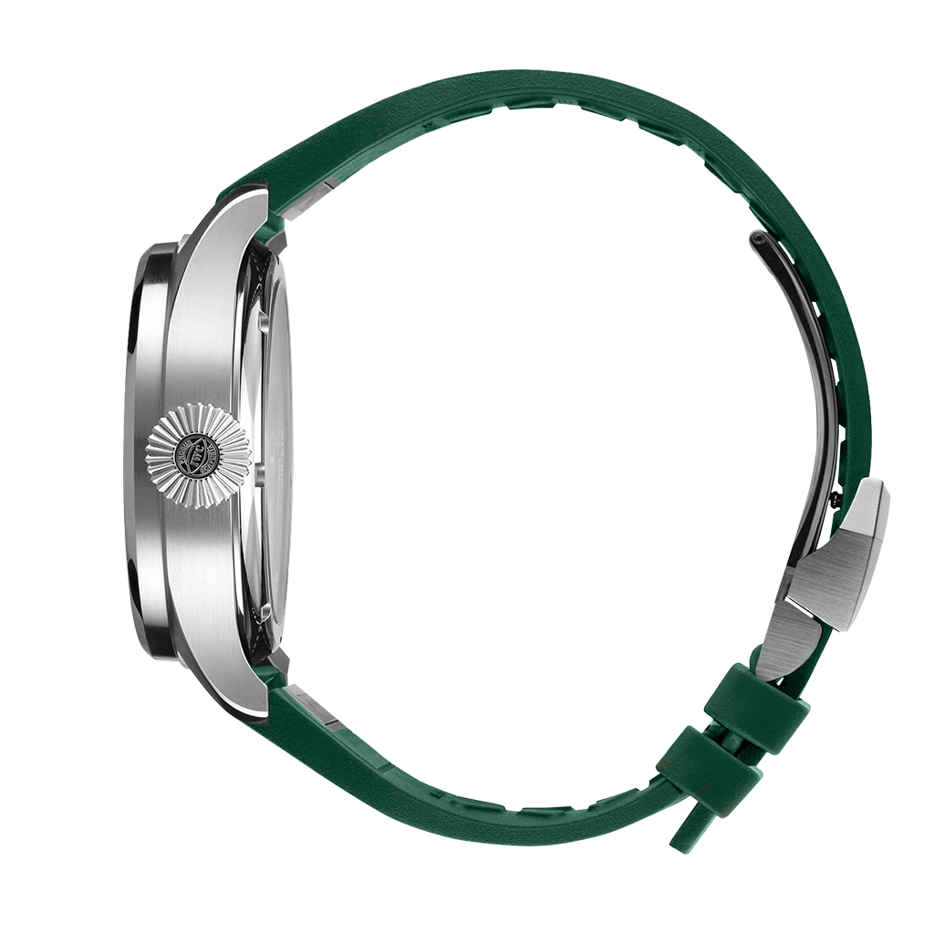Stainless steel case, Automatic, self-winding, Diameter 46.2 mm, Green rubber strap with EasX-CHANGE system, Strap width 22.0 mm.