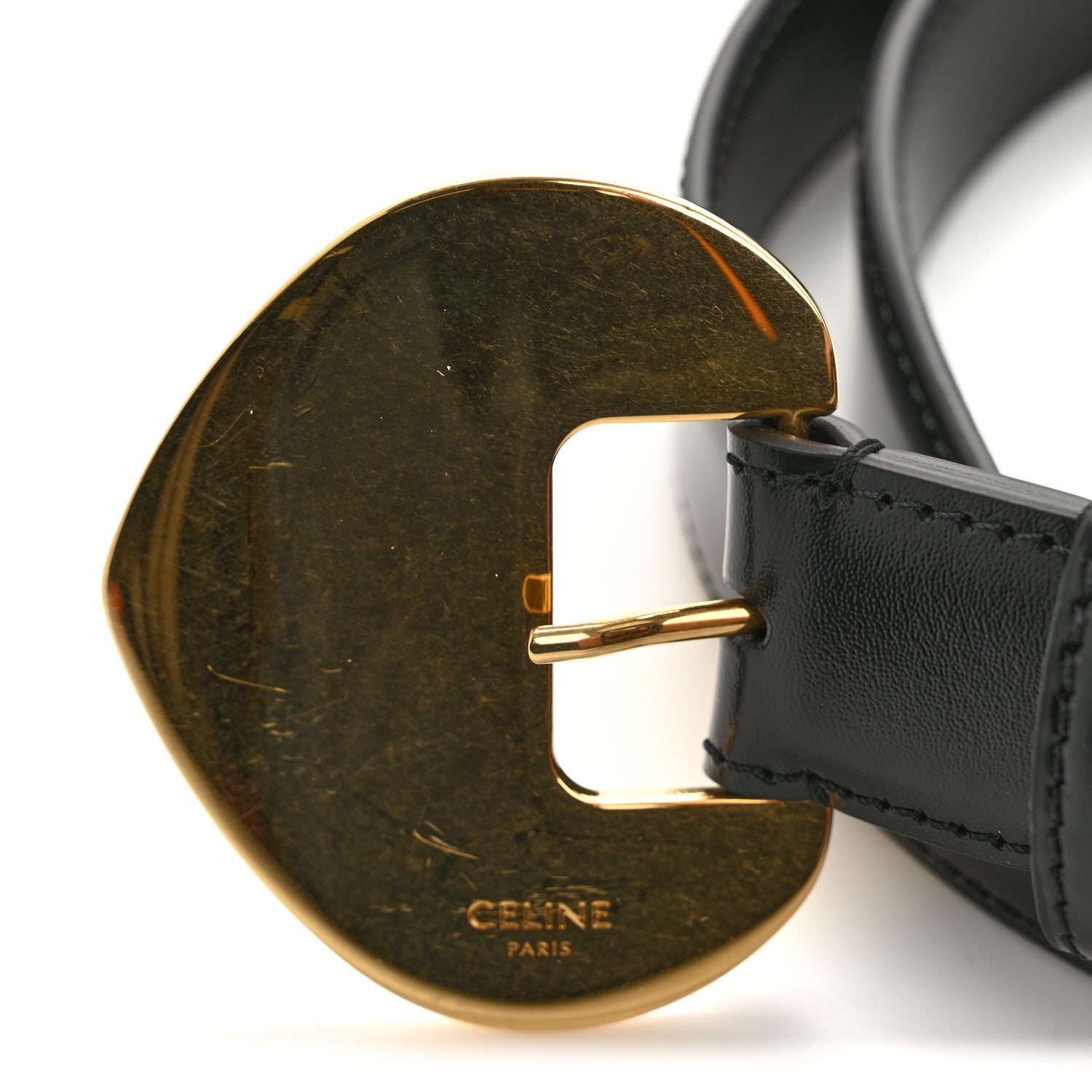 This is an authentic CELINE Box Calfskin 25mm Cintura Belt size 80 or 32 in Black. This chic belt is crafted smooth calfskin leather in black and features a gold-tone buckle.