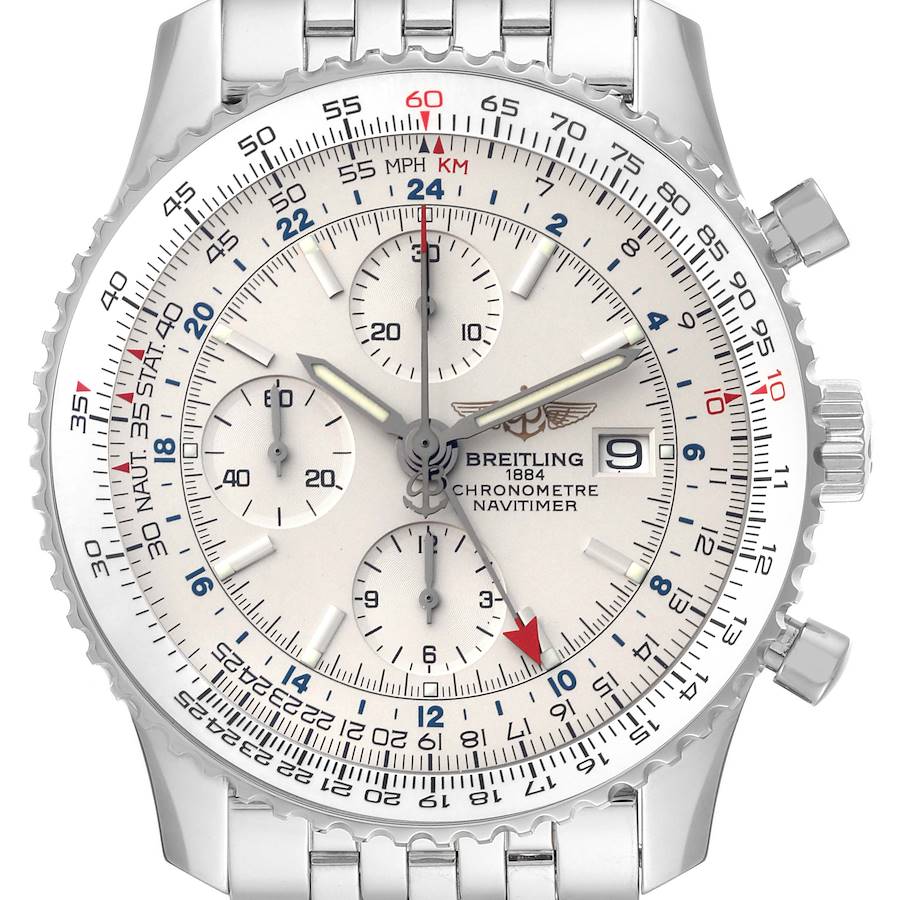 Breitling Navitimer World GMT A24322 Silver Dial Steel Mens Watch