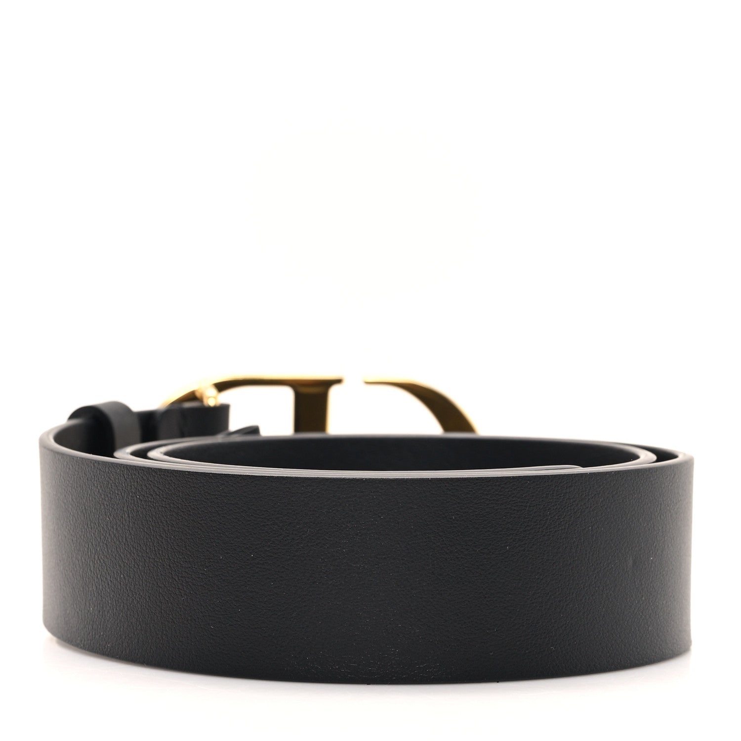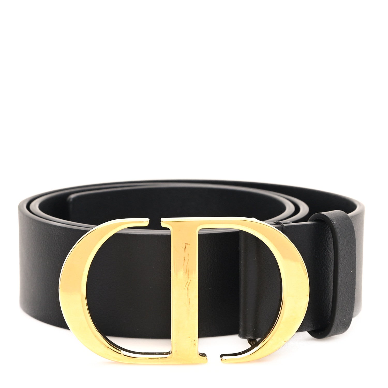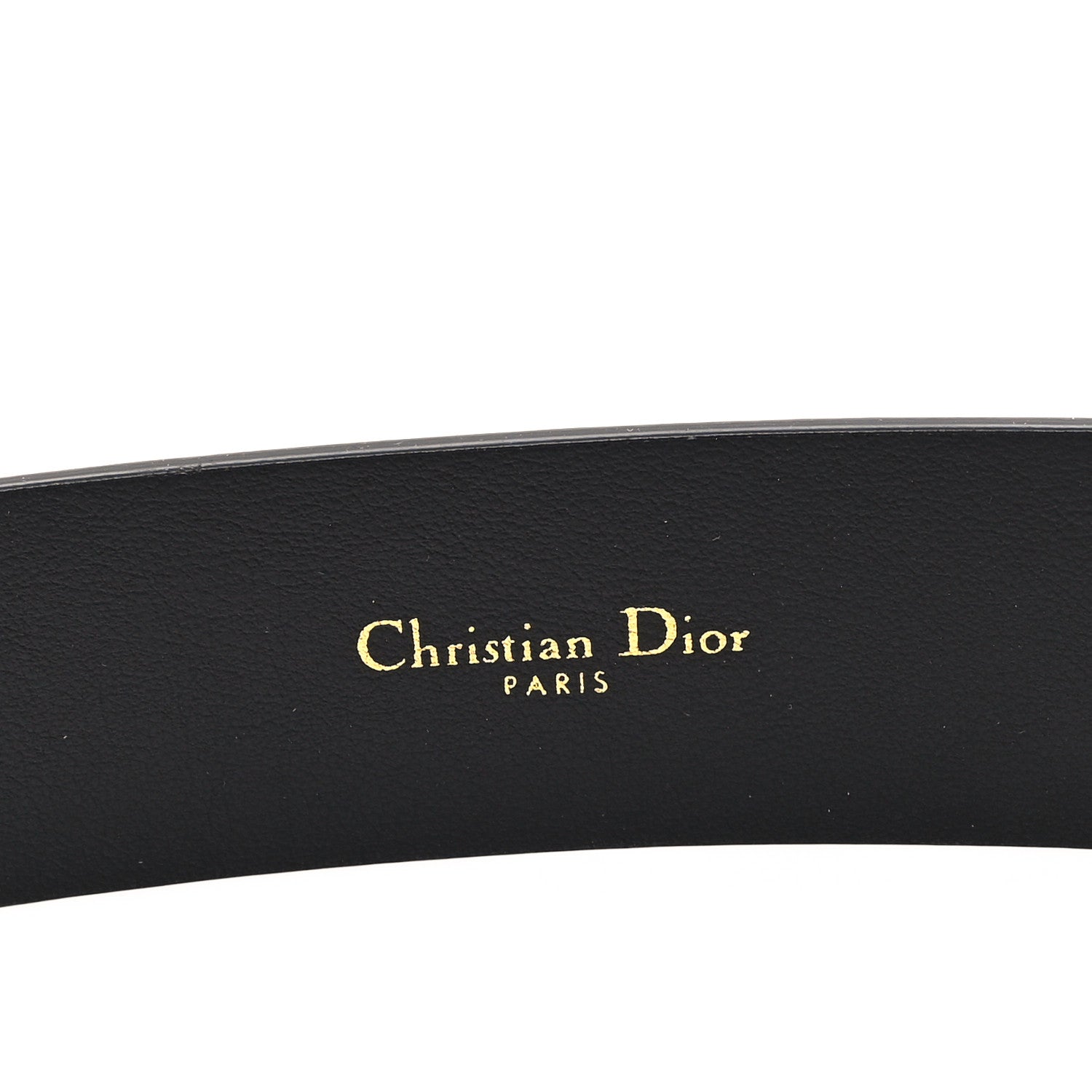 This is an authentic CHRISTIAN DIOR Calfskin CD Belt size 70 or 28 in Black. This is a lovely belt is crafted of black leather and features a gold CD buckle.