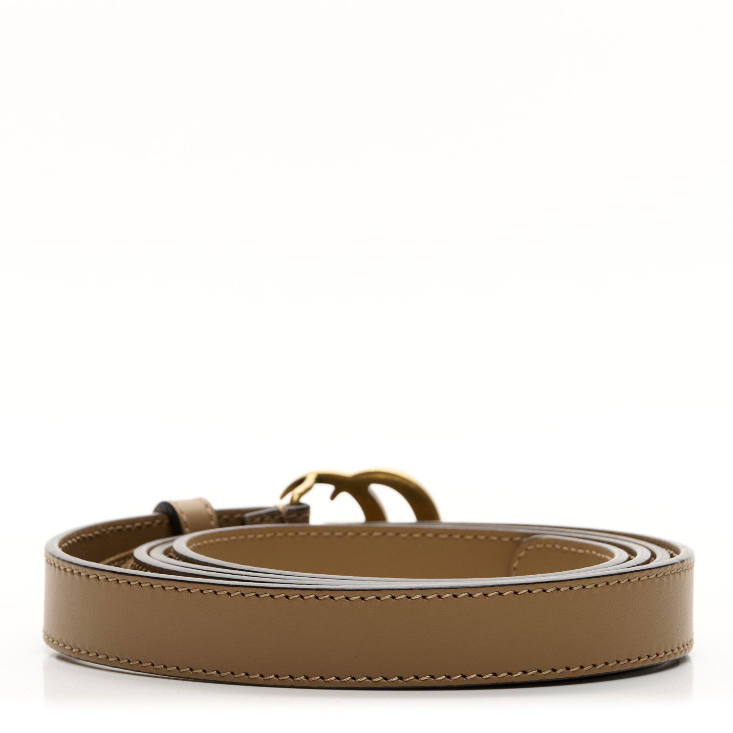 This is an authentic GUCCI Calfskin Double G 20mm Belt size 115 or 46 in Natural Tan. This stylish belt is crafted of smooth calfskin leather in brown. The belt features a Double G aged gold buckle.
