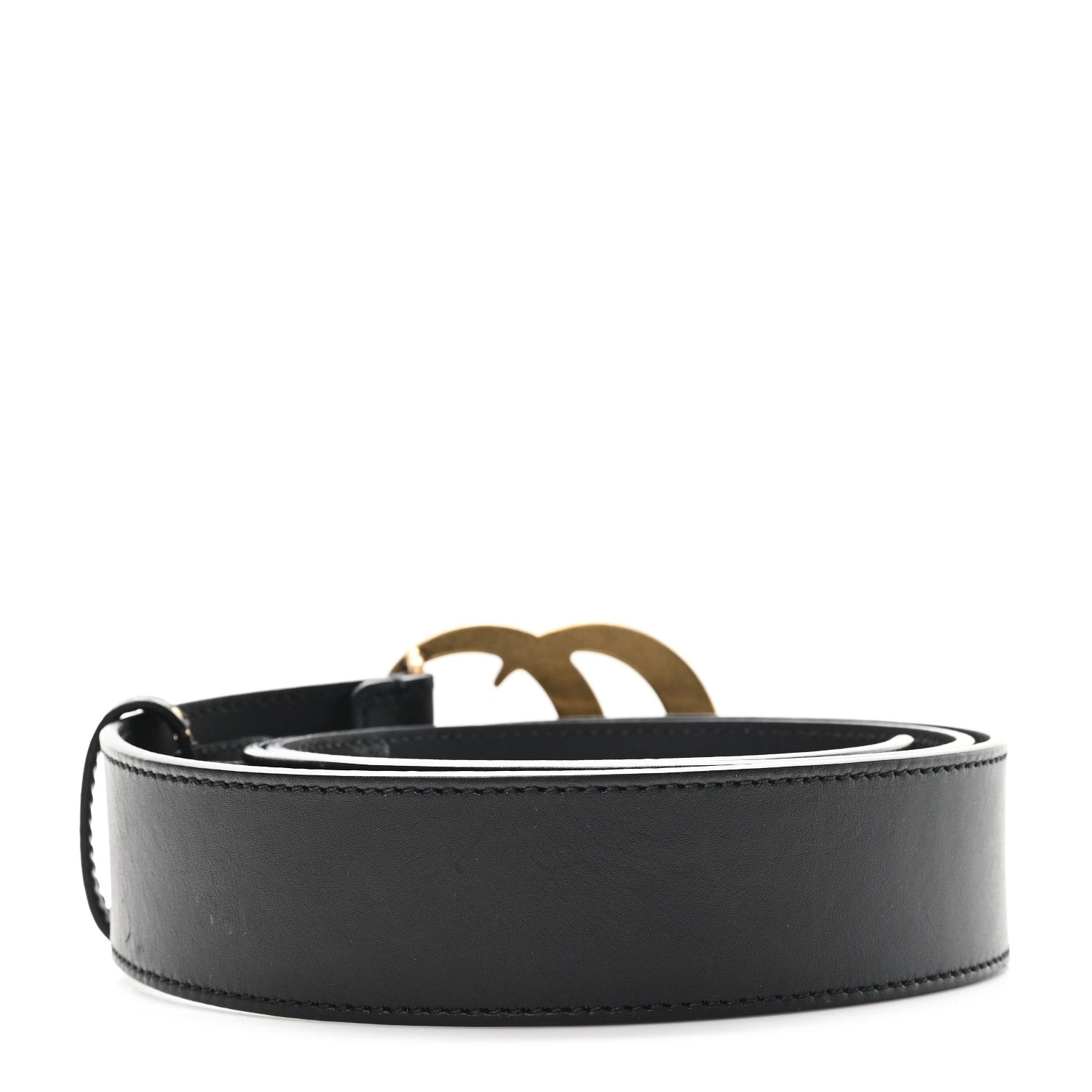 This is an authentic GUCCI Calfskin Double G 40mm Belt size 95 or 38 in Black. This stylish belt is crafted of black calfskin leather and features an aged gold GG buckle.
