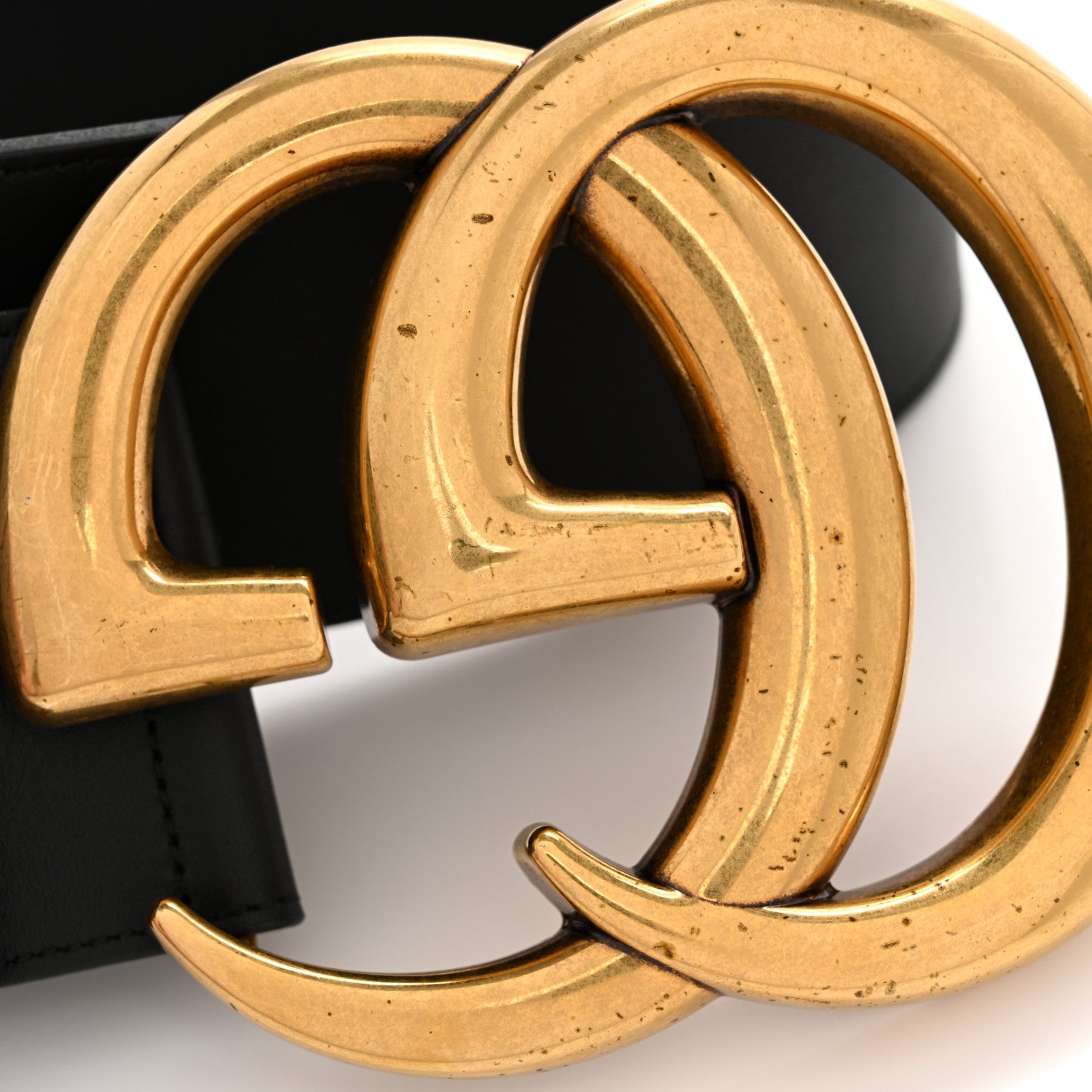 This is an authentic GUCCI Calfskin Double G Wide Belt size 75 or 30 in Black. This stylish belt is crafted of black calfskin leather and features a Gucci GG aged gold buckle.
