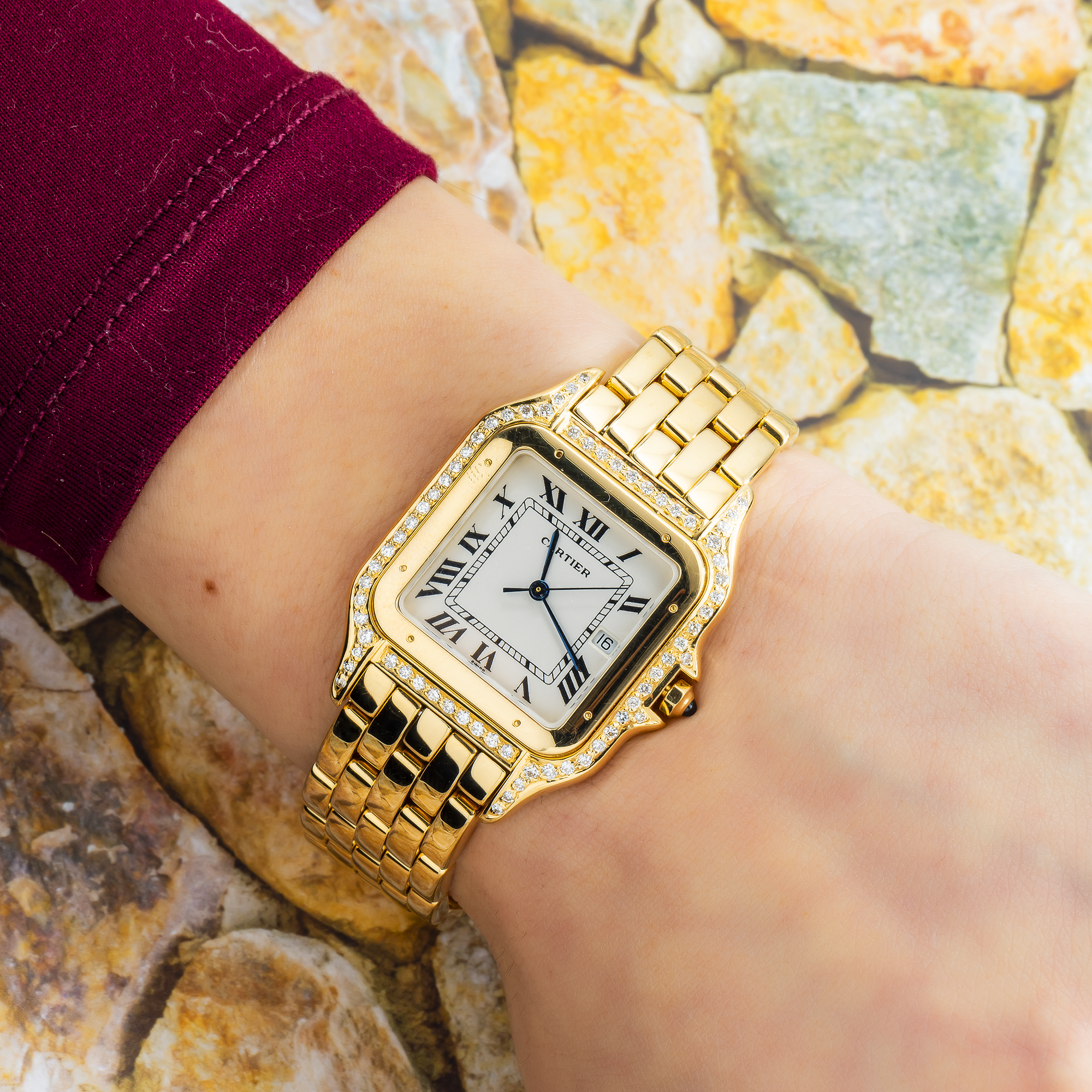 Model Name: Cartier 18K Yellow Gold Panthere De Cartier with Diamond Case