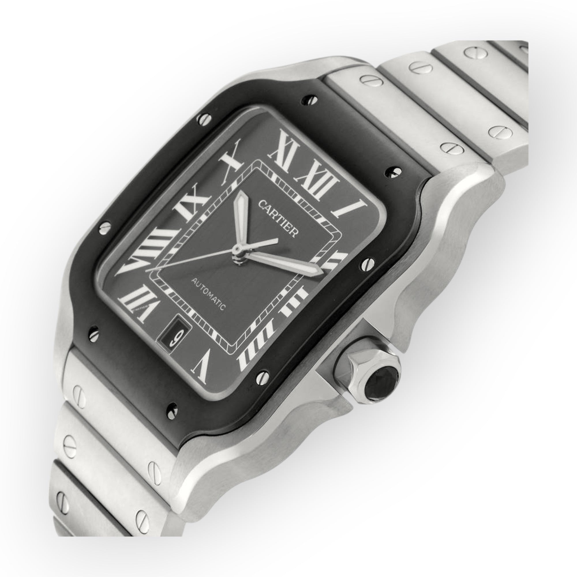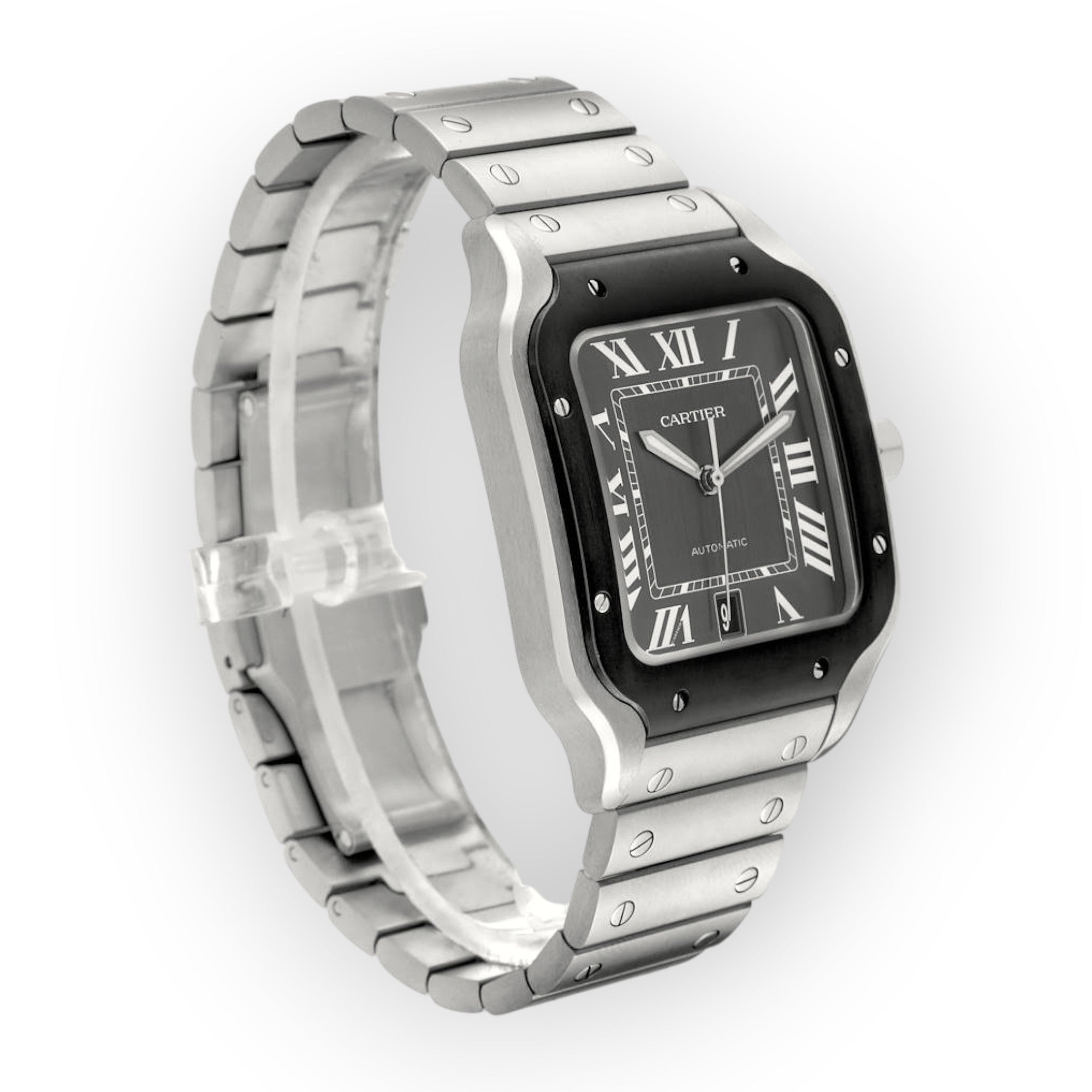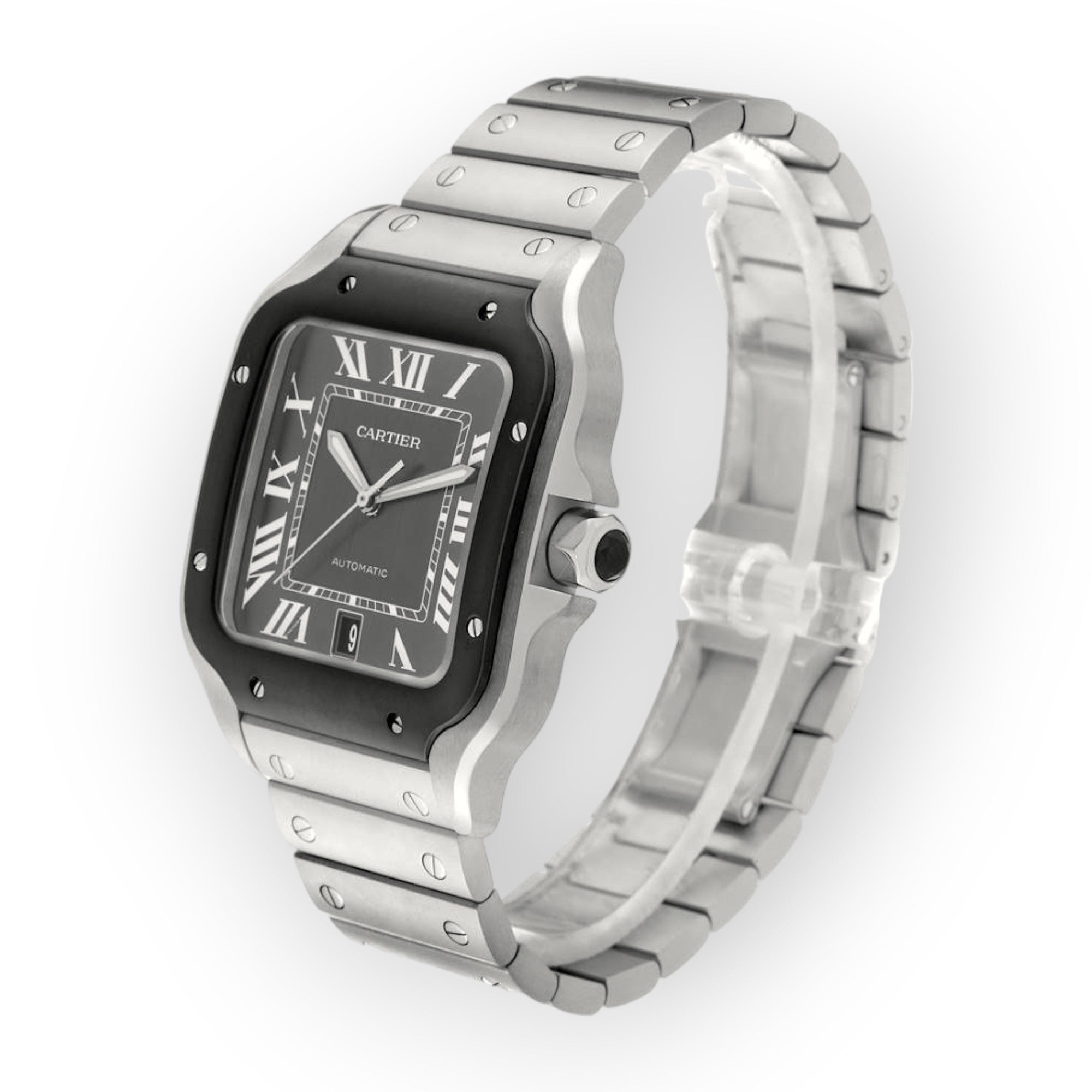 Cartier Santos Steel ADLC WSSA0037 Grey Dial Mens Watch