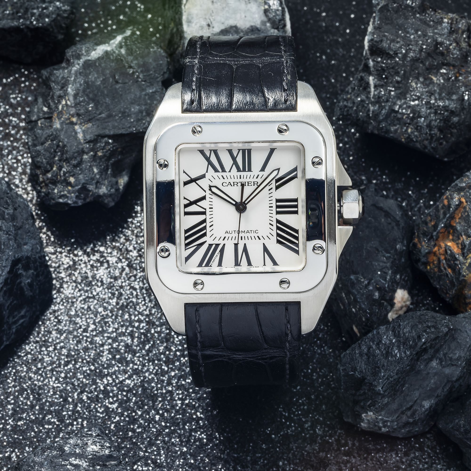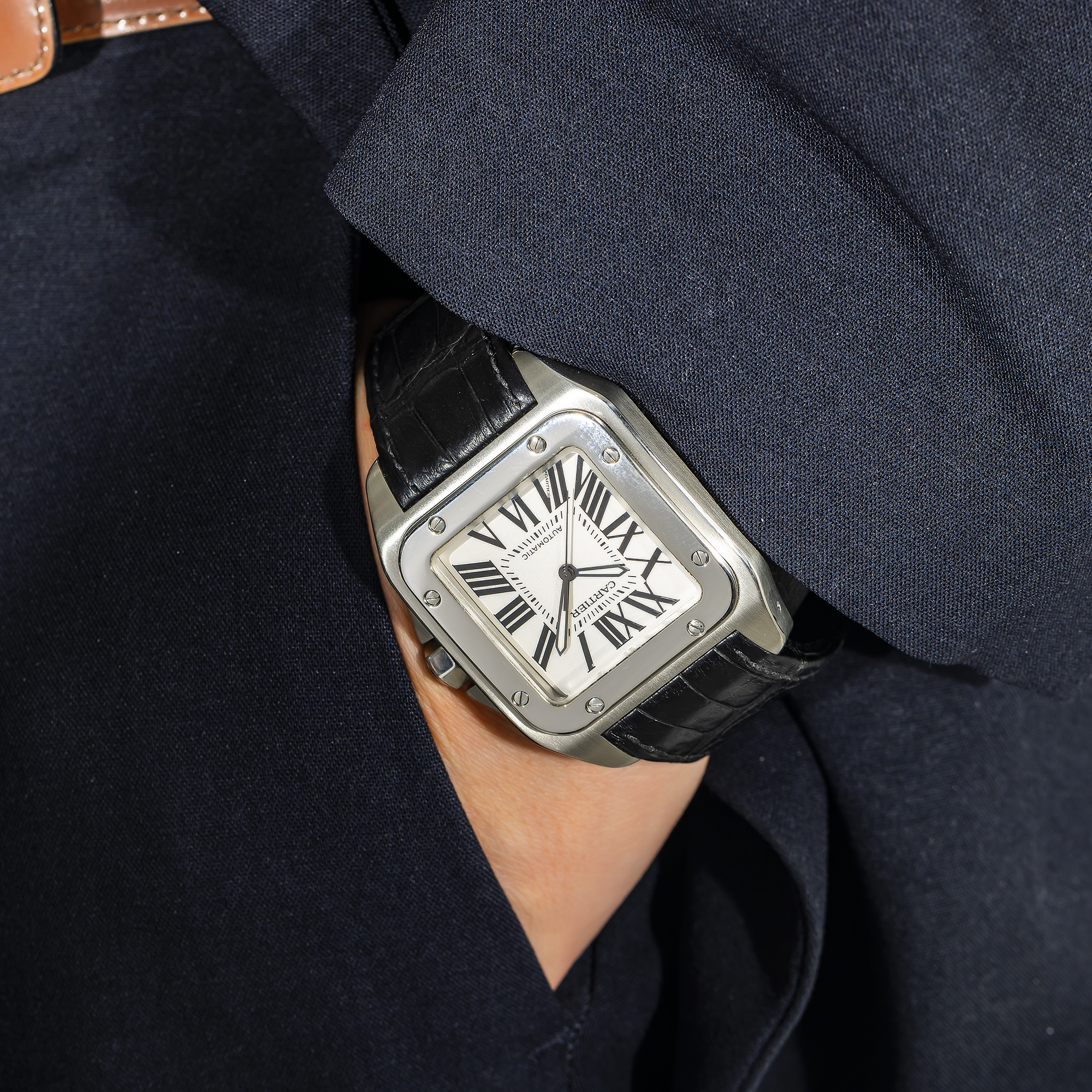 Cartier Santos XL Stainless Steel Automatic Watch – 38mm Leather Strap