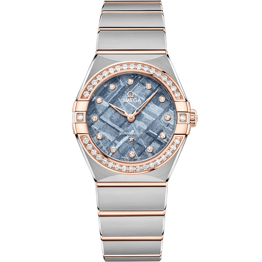 Quartz movement with “Long Life” feature to maximize the autonomy of the battery. Exclusive red Omega logo with rhodium plated parts and circular graining.