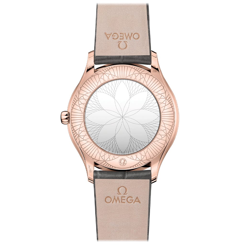 Quartz movement with “Long Life” feature to maximize the autonomy of the battery. Exclusive red Omega logo with rhodium plated parts and circular graining.