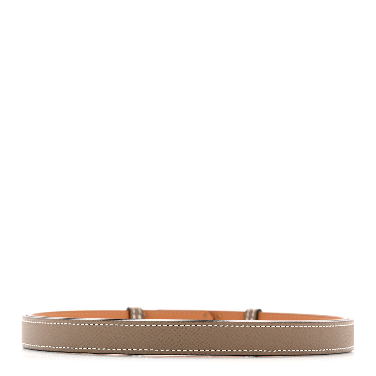 This is an authentic HERMES Epsom Kelly Belt in Etoupe. This stylish belt is crafted of taupe Epsom calfskin leather. This one-size-fits-all belt features a discrete sliding system and can be worn at the waist or low at the hips. The front has a classic polished rose gold-plated Kelly turn lock.
