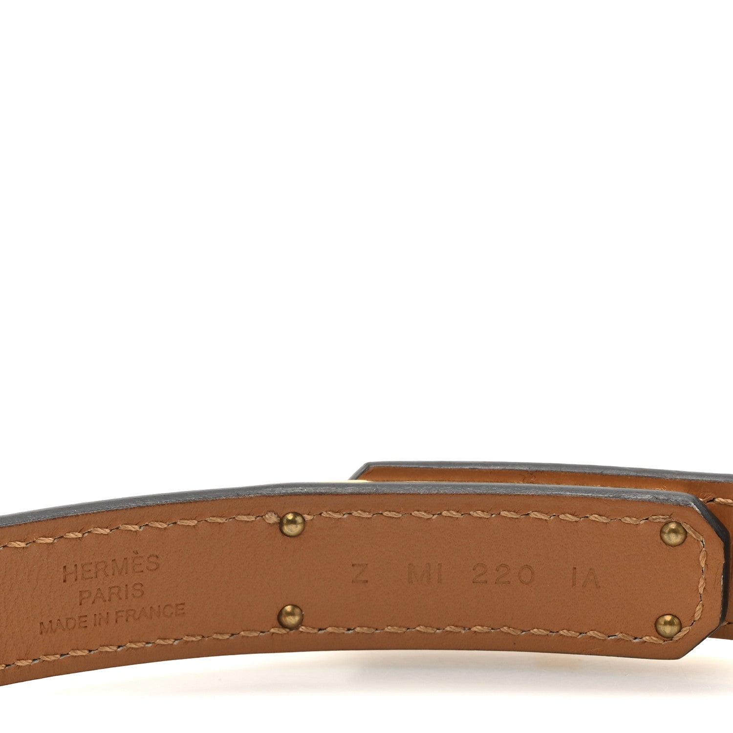 This is an authentic HERMES Epsom Kelly Belt in Gold. This stylish belt is crafted of Epsom calfskin leather in golden brown. This belt features a polished gold plated Kelly turn lock plate and a discreet sliding system that allows the belt to be worn low at the hips or on the waist.