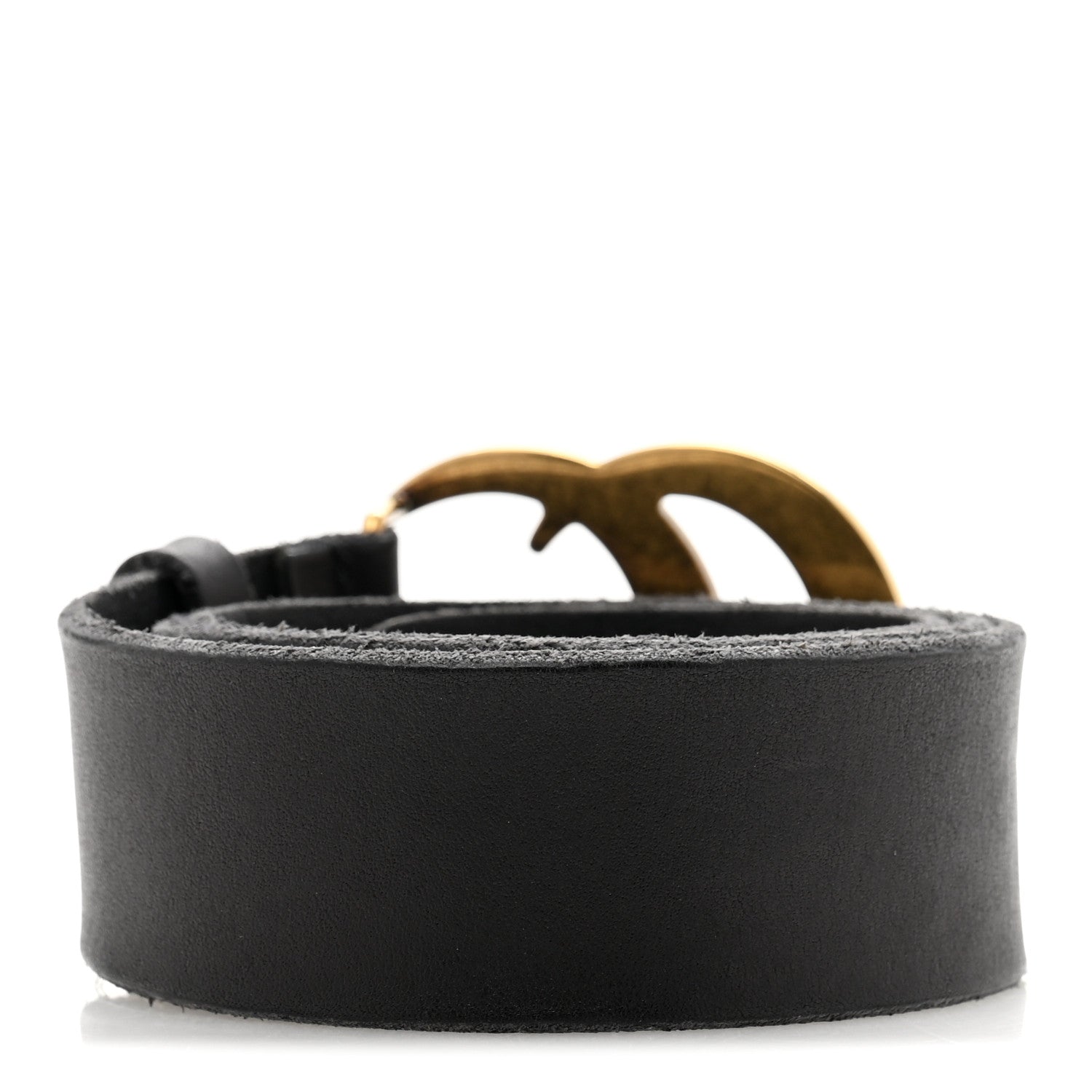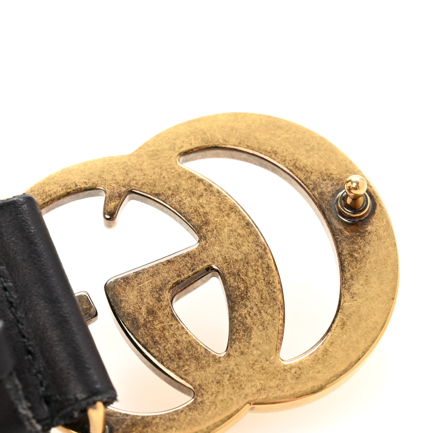 This is an authentic GUCCI Faded Calfskin Double G 40mm Belt 75 or 30 in Black. This stylish belt is crafted of aged calfskin leather in black. The belt features an interlocking GG aged gold buckle.
