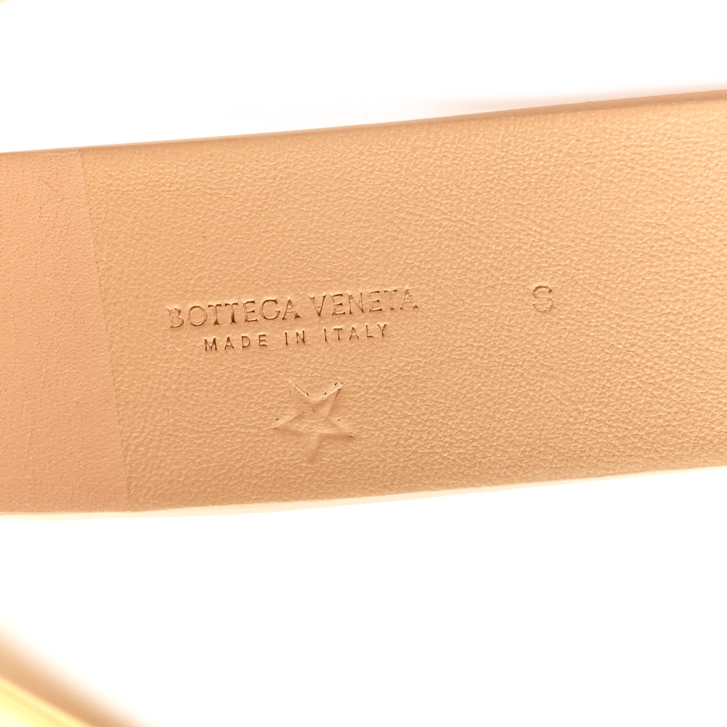 This is an authentic BOTTEGA VENETA French Calfskin Cintura Belt size S in Almond Gold. This striking belt is crafted of Bottega Vaneta’s iconic leather. It features a gold horseshoe shaped buckle.