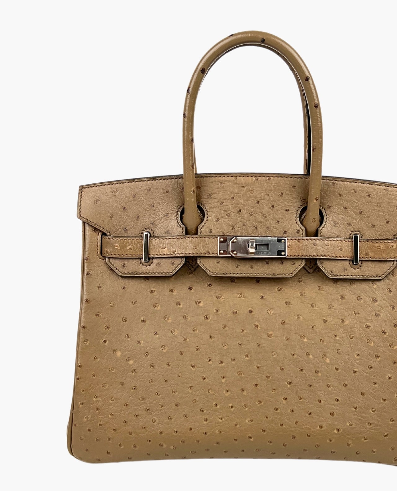 A true statement of luxury and sophistication, the Hermès Birkin 30 in Ostrich leather is a rare and highly sought-after piece. Crafted from exquisite Tabac-colored ostrich leather, this bag showcases the impeccable craftsmanship and timeless elegance that Hermès is renowned for. The unique texture of ostrich leather not only adds a distinctive look but also ensures exceptional durability.