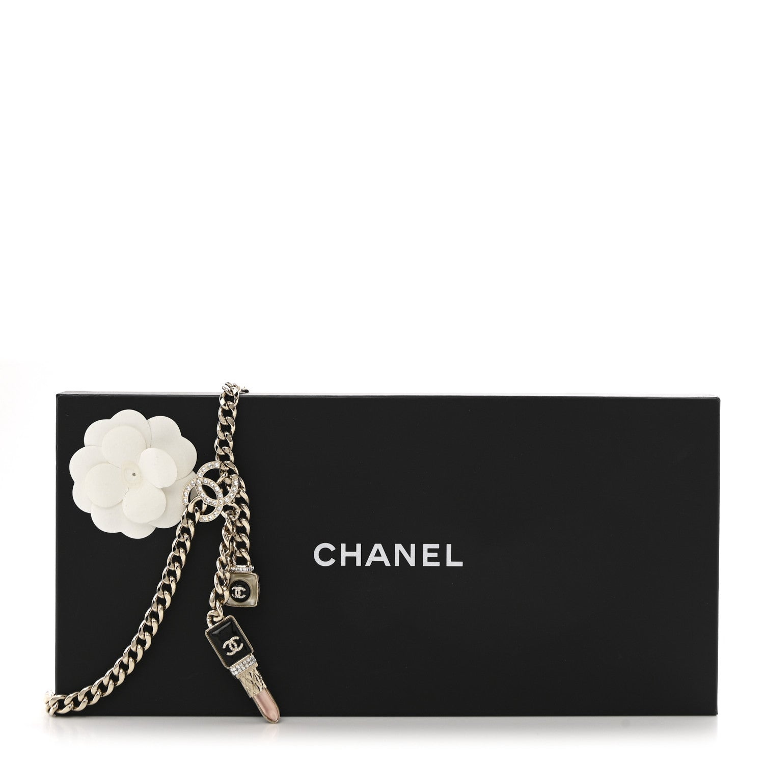 Metal Resin Crystal CC Lipstick Chain Belt 85 Gold Pink Black