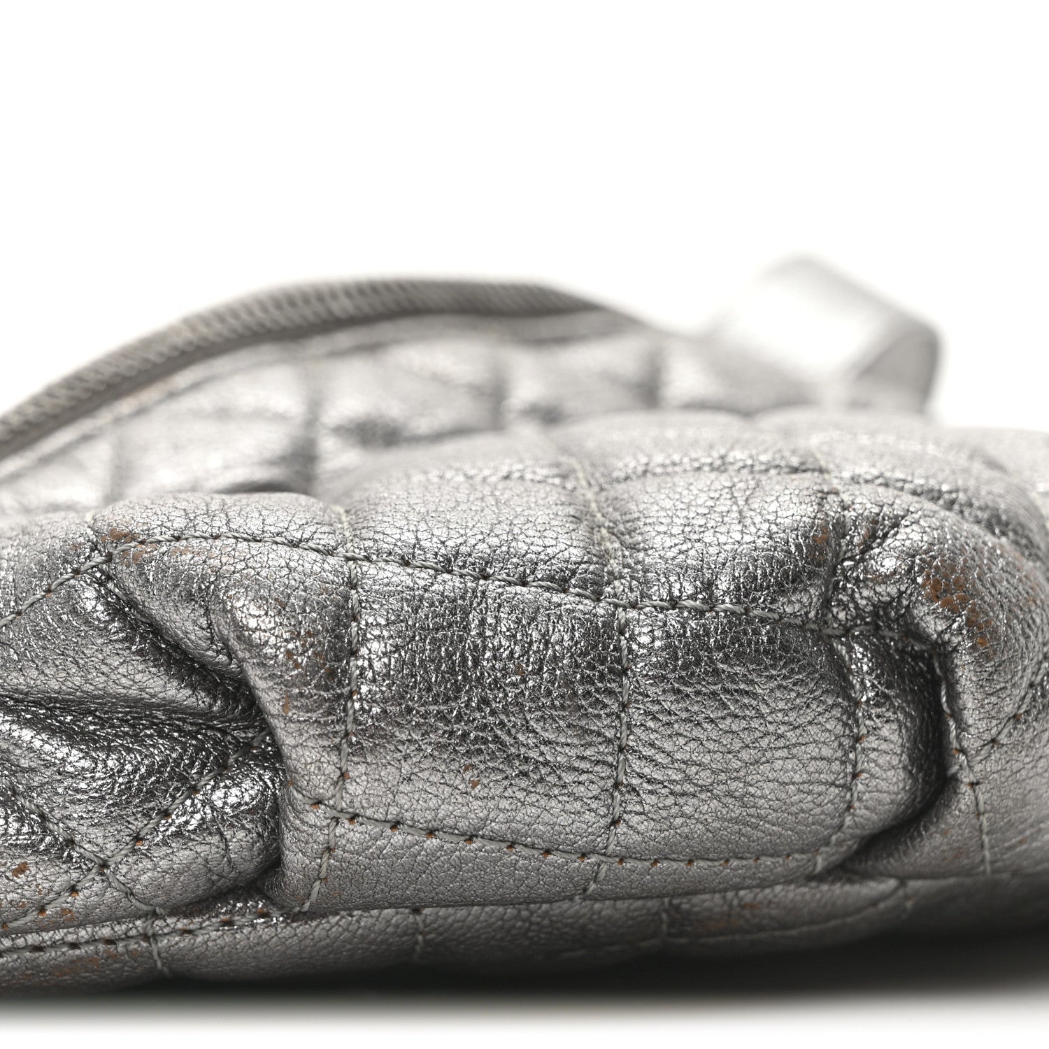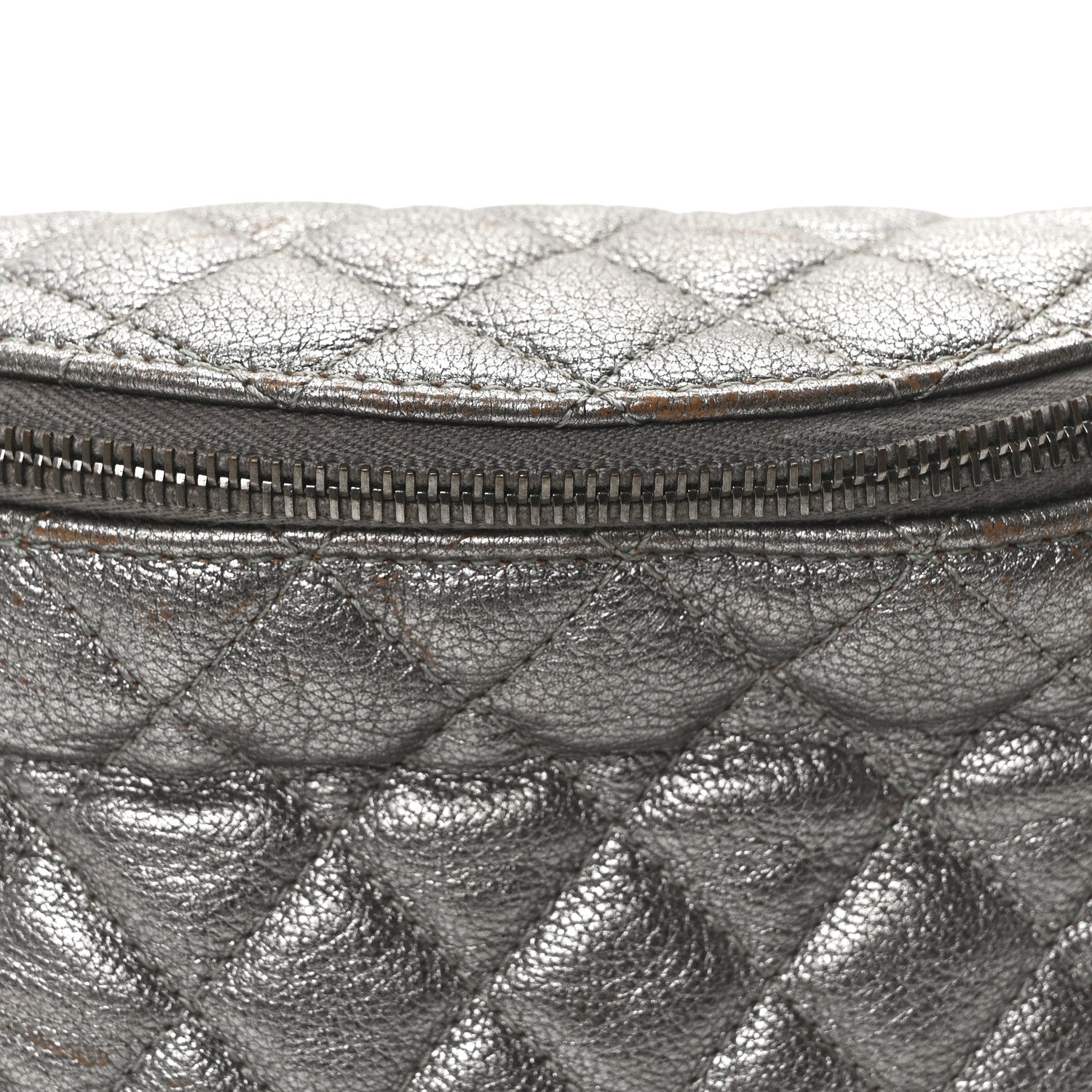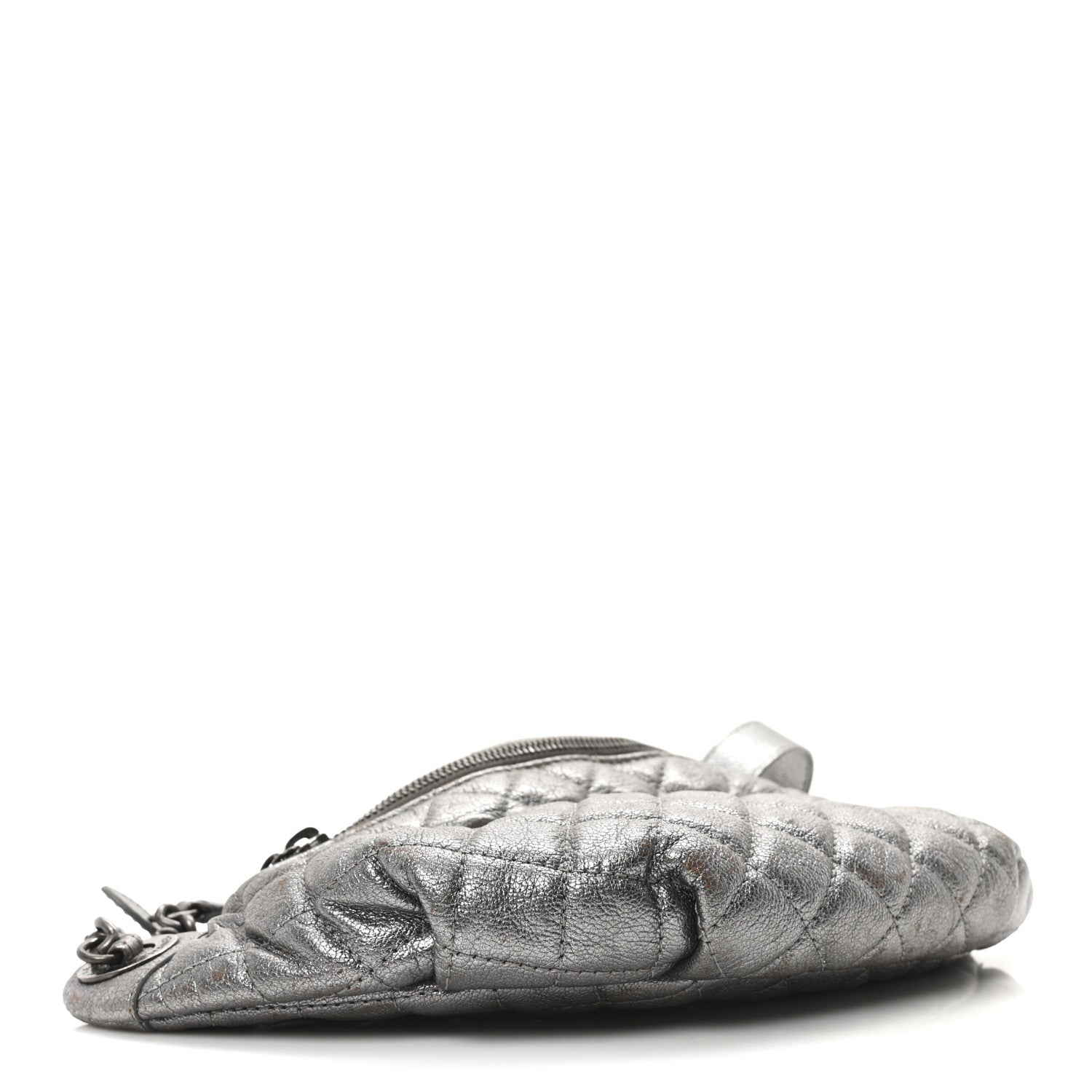 Metallic Goatskin Quilted Banane Waist Bag Fanny Pack Silver