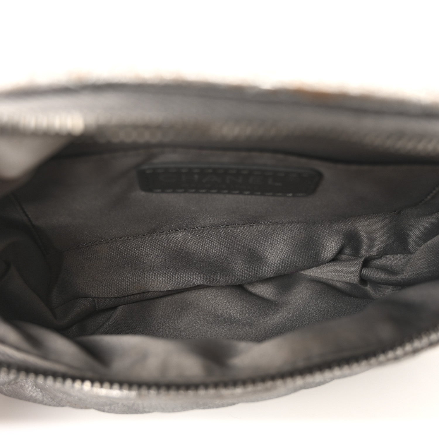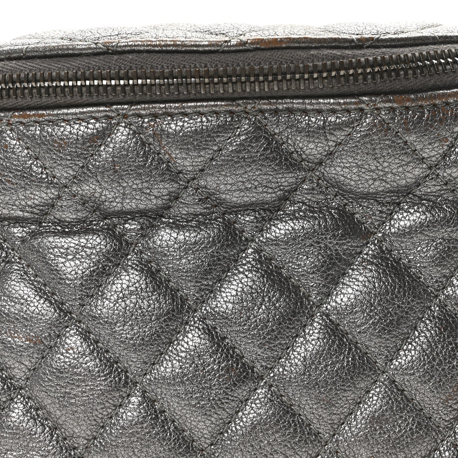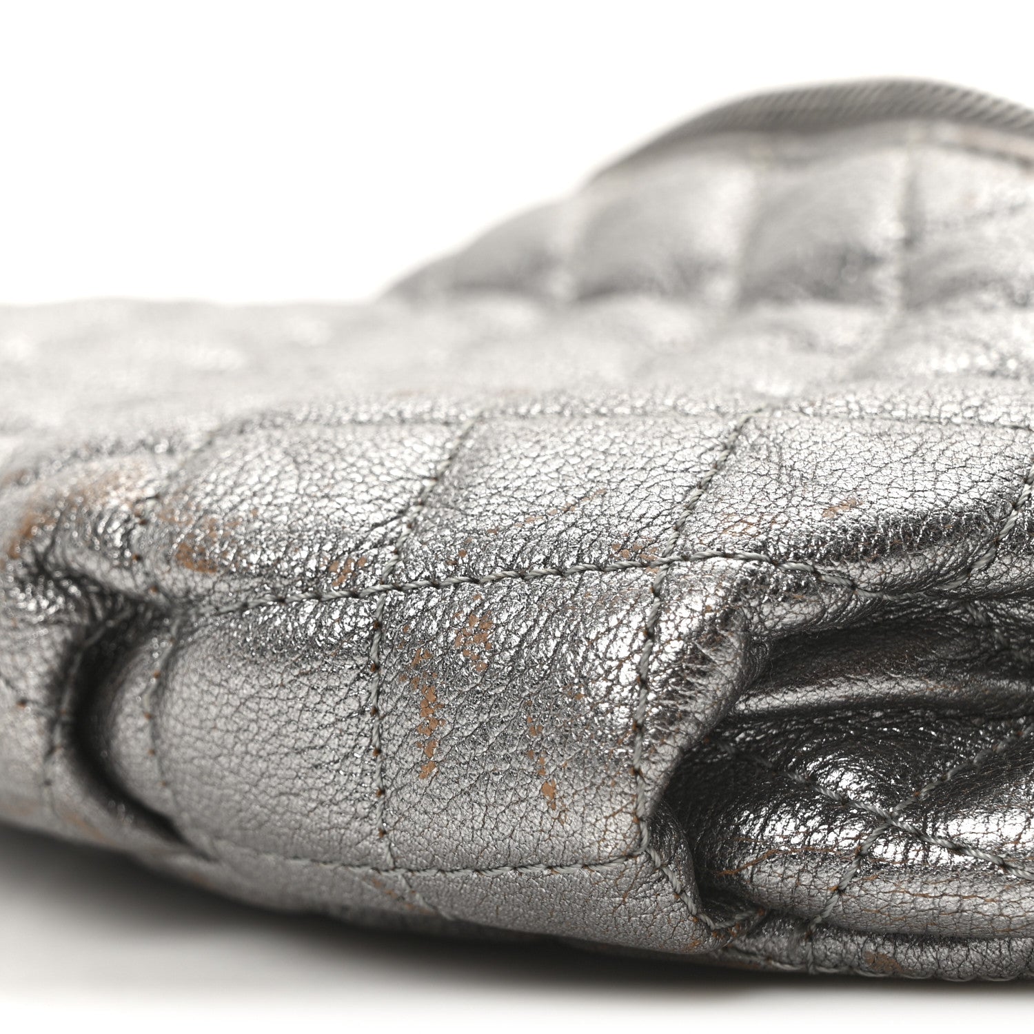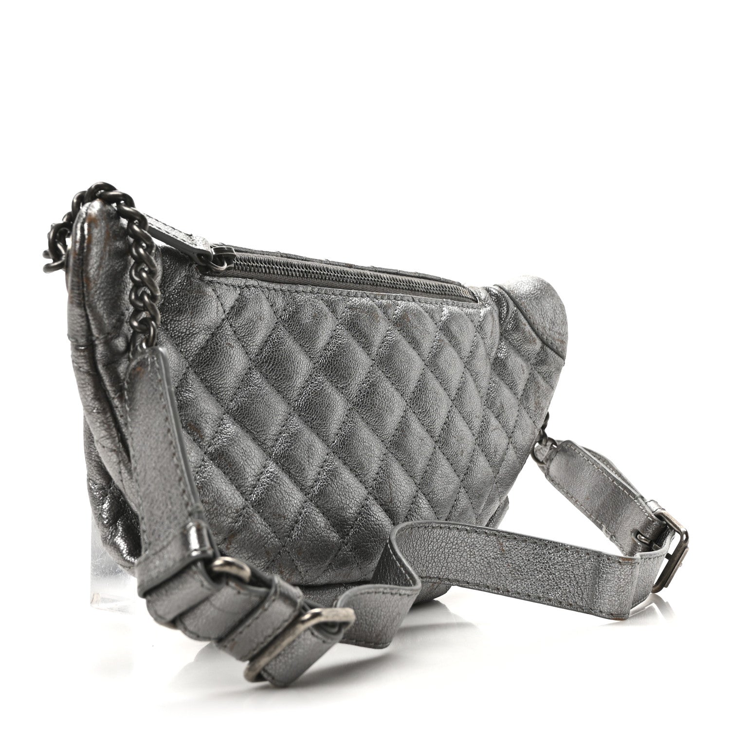 Metallic Goatskin Quilted Banane Waist Bag Fanny Pack Silver