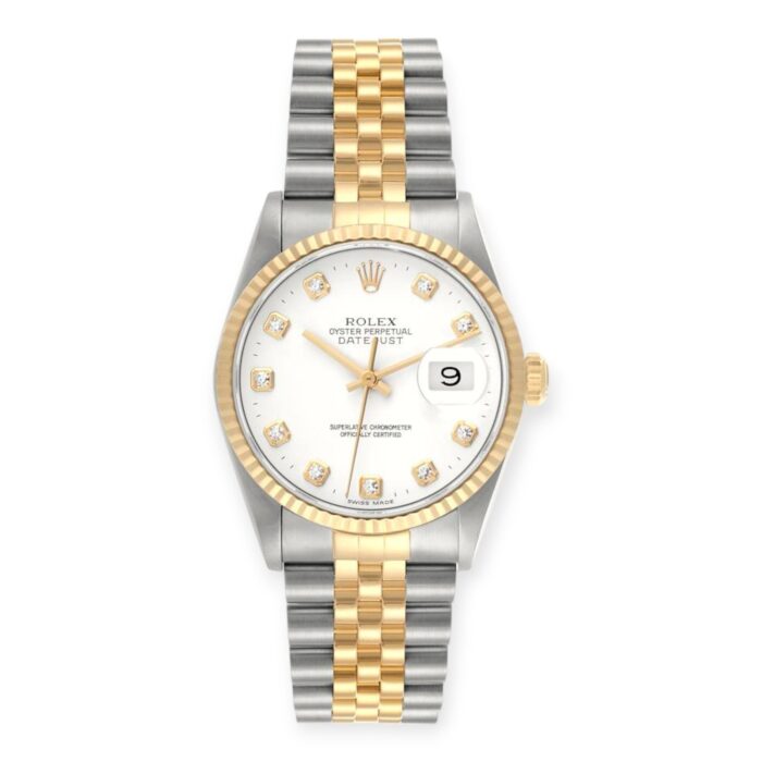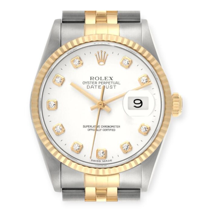 Dial: Silver teak dial with luminous hands and index hour markers. Date calendar window at 3 o’clock aperture