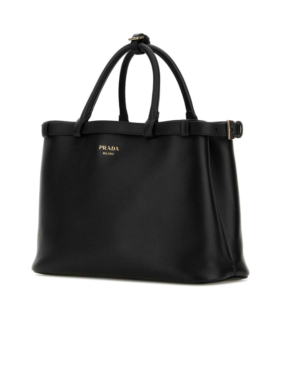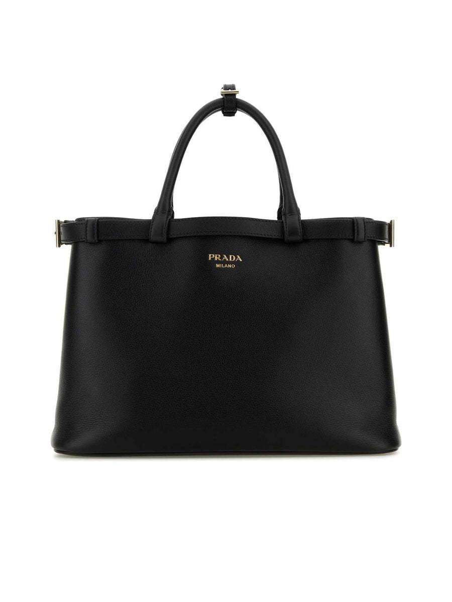 Prada Buckle Medium Leather Handbag with Double Belt