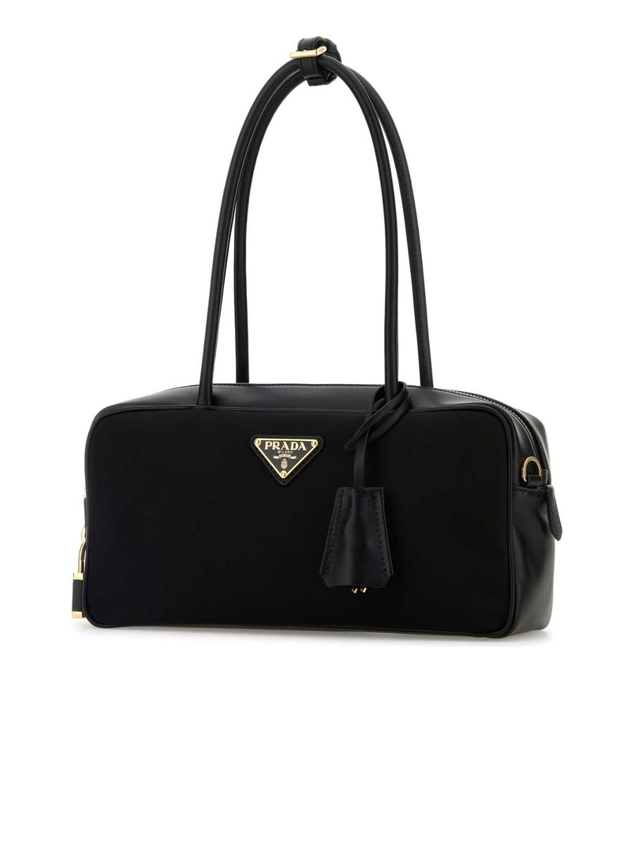 Re-Nylon and Leather Small Top-Handle Bag with Padlock
