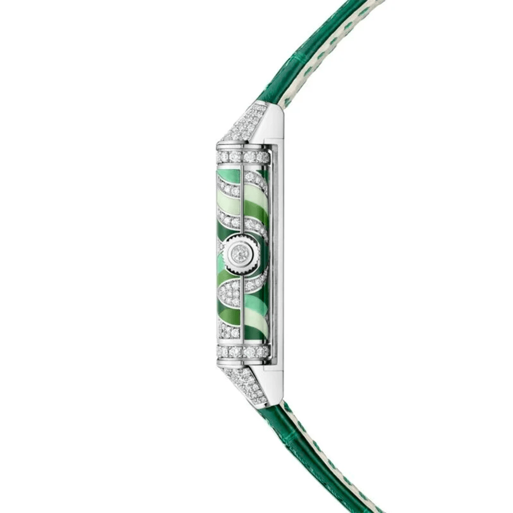 - Caseback in grand-feu enamel and diamonds