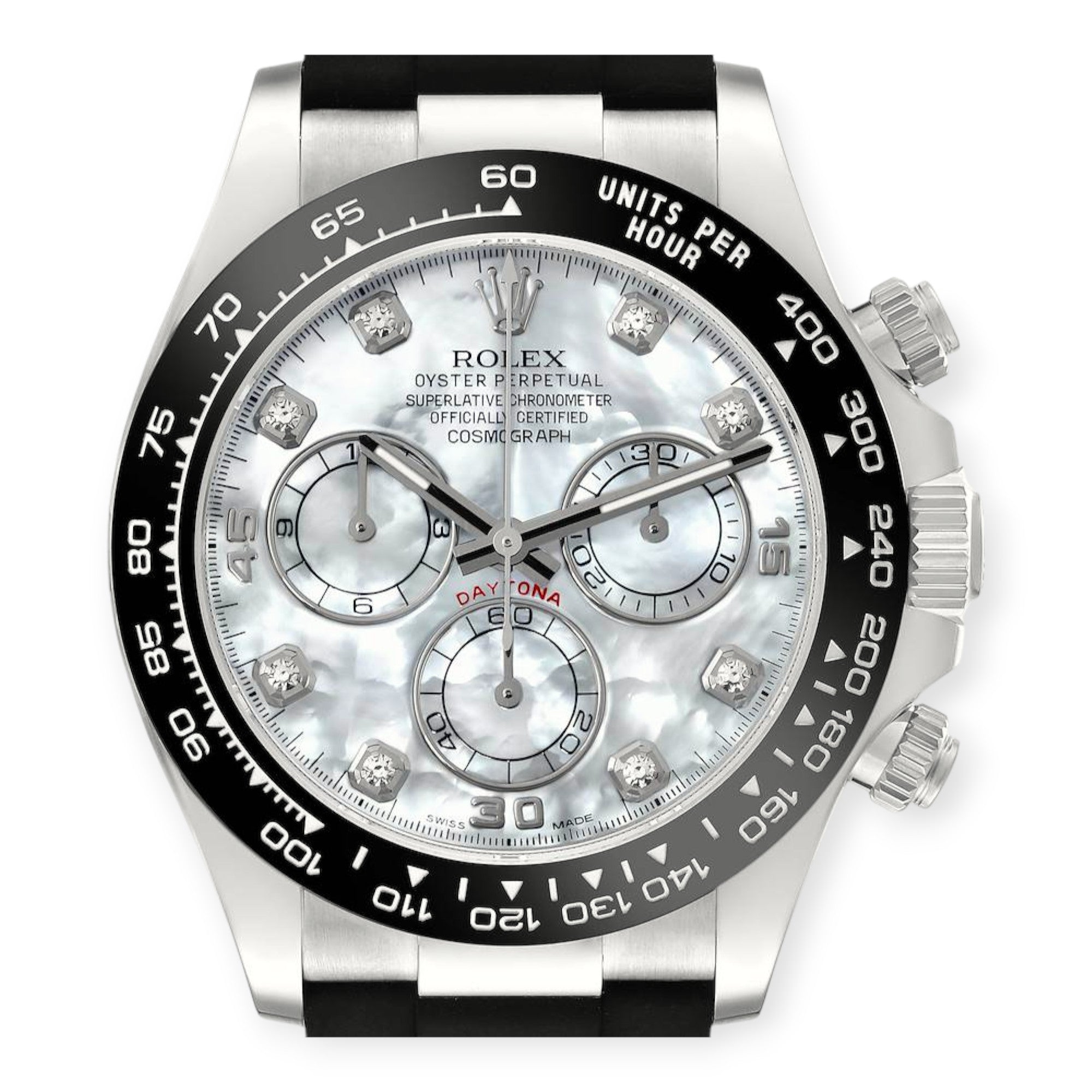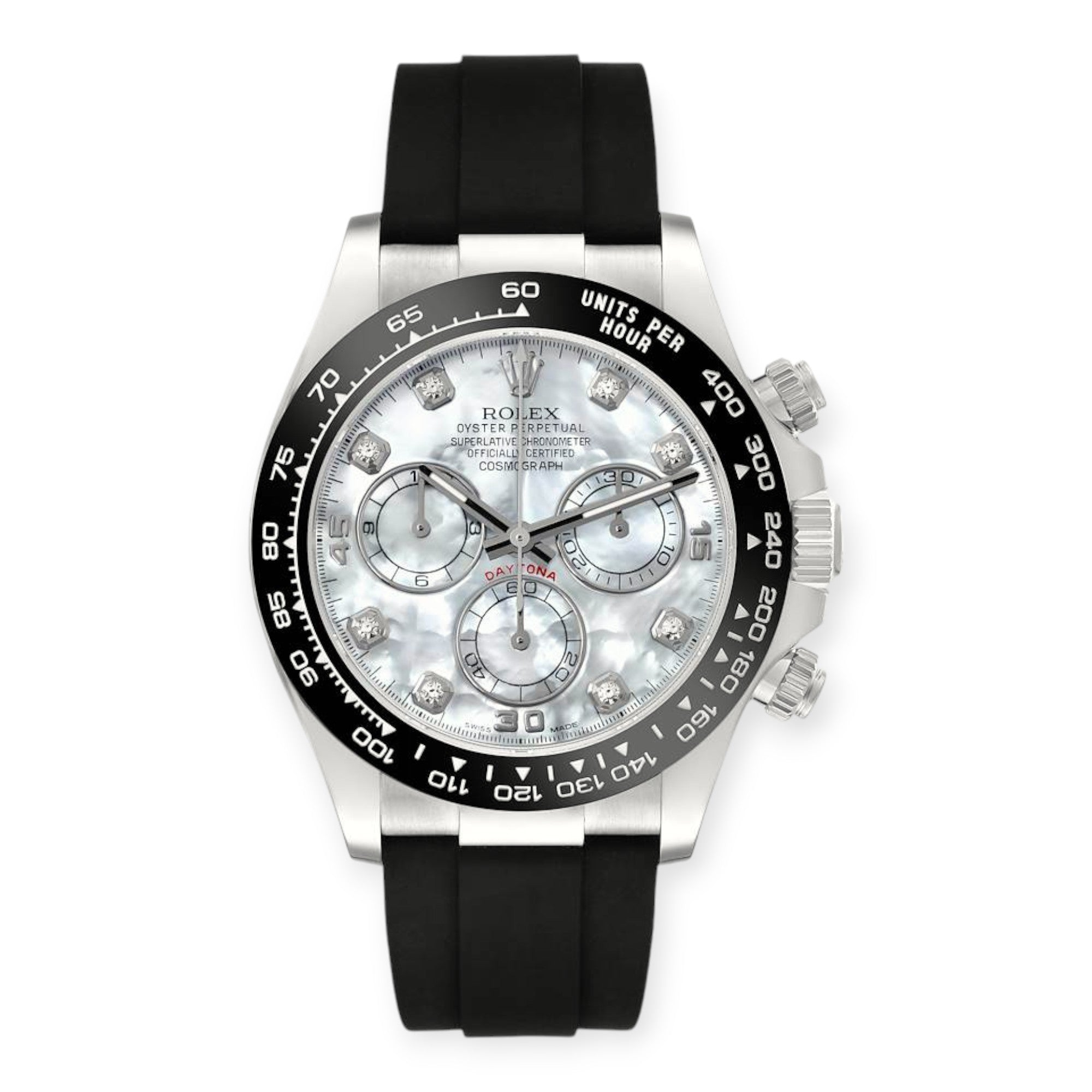 Rolex Cosmograph Daytona 116519 Oysterflex White Gold Mother Of Pearl Diamond Dial Mens Watch