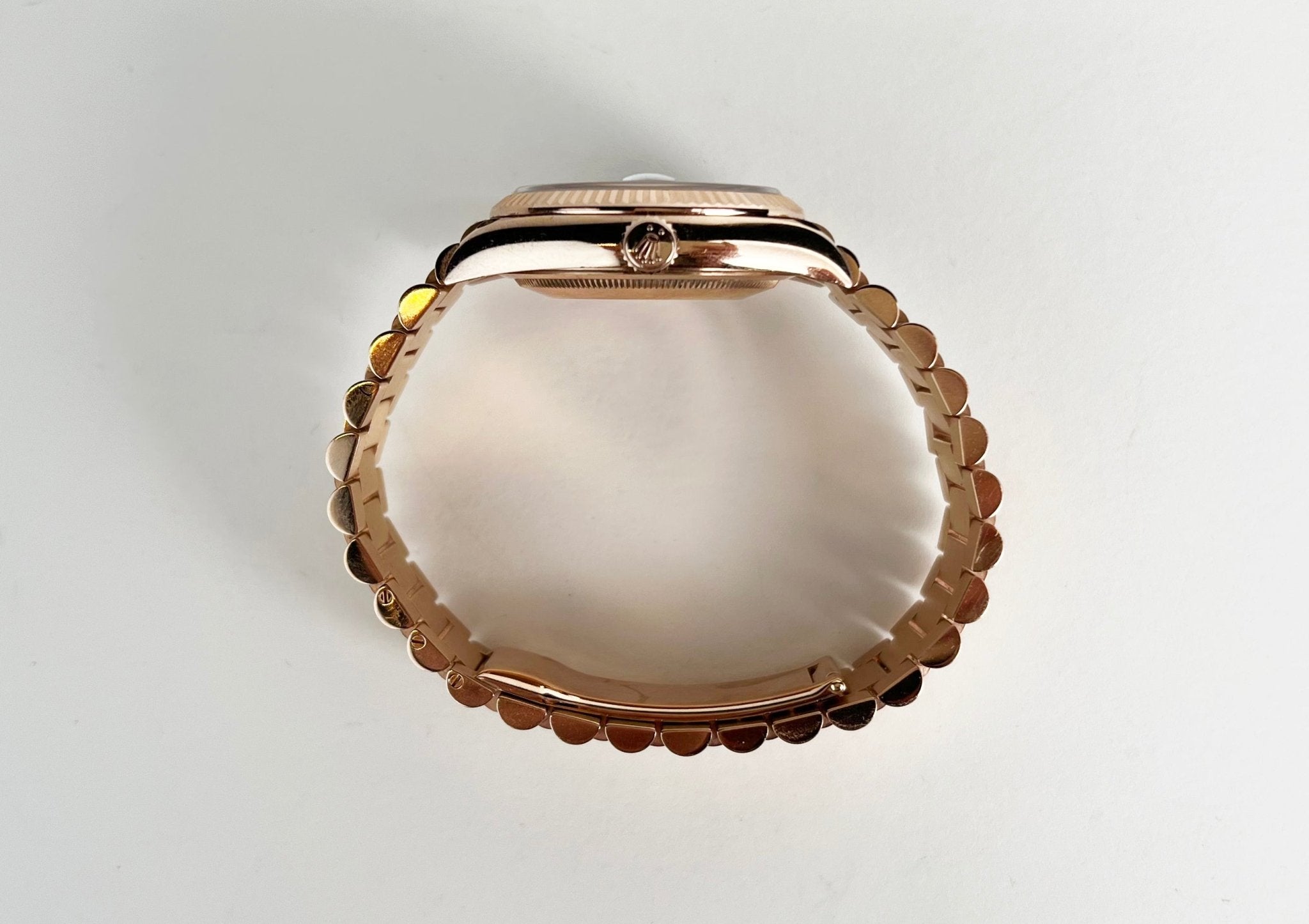 标签: 1000-2000, 30000-40000, 36 mm, brown, day-date, fluted, luxury-time-nyc-inc, over-2000, President Bracelet, Rolex, Rose Gold, Unisex, watch
