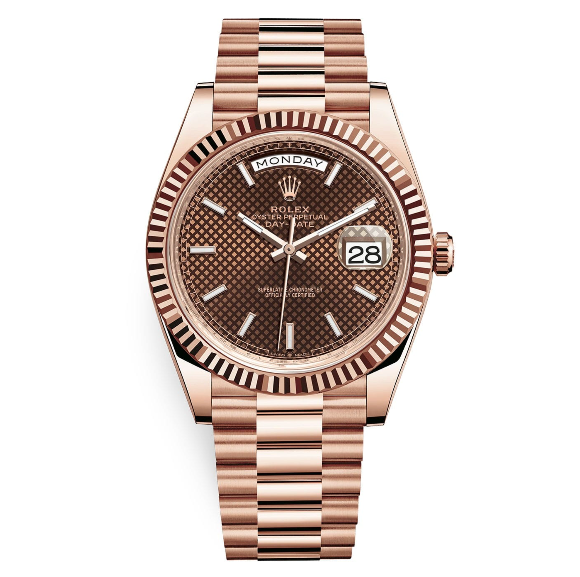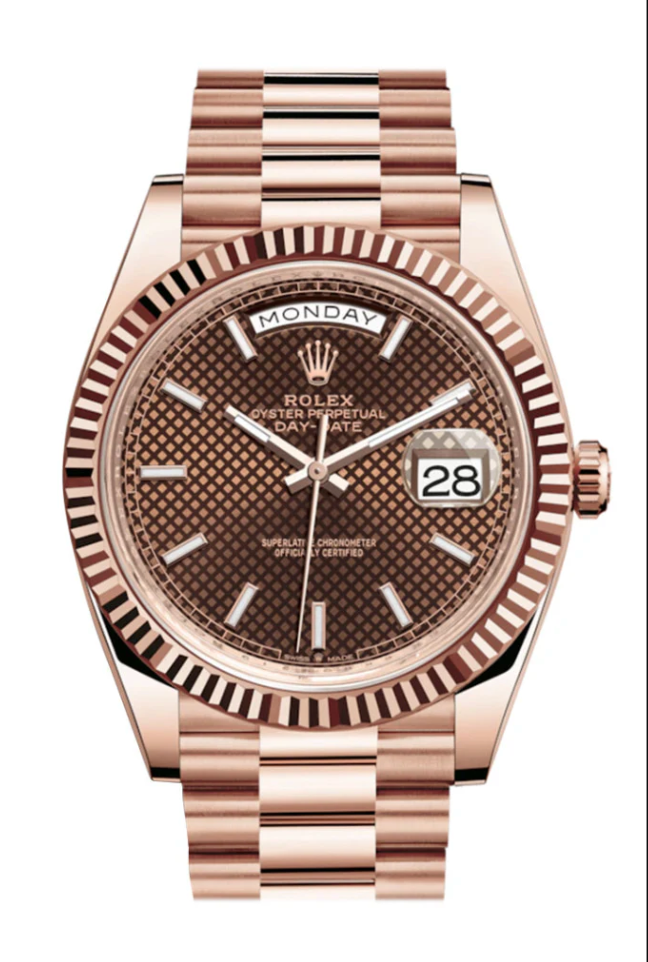 Rolex Day-Date 40 Chocolate Diagonal Motif Dial & Fluted Bezel 18K Everose Gold President 228235