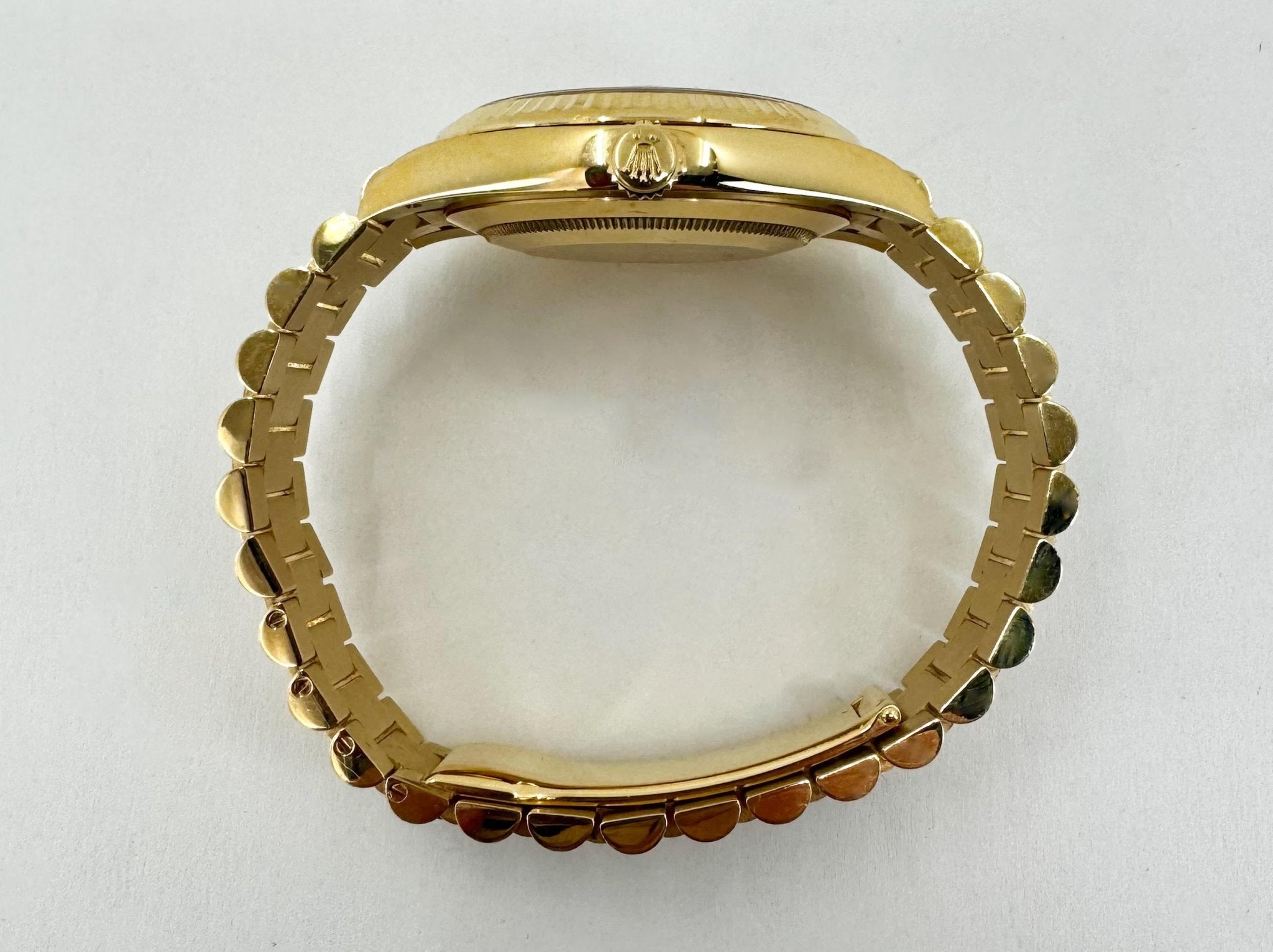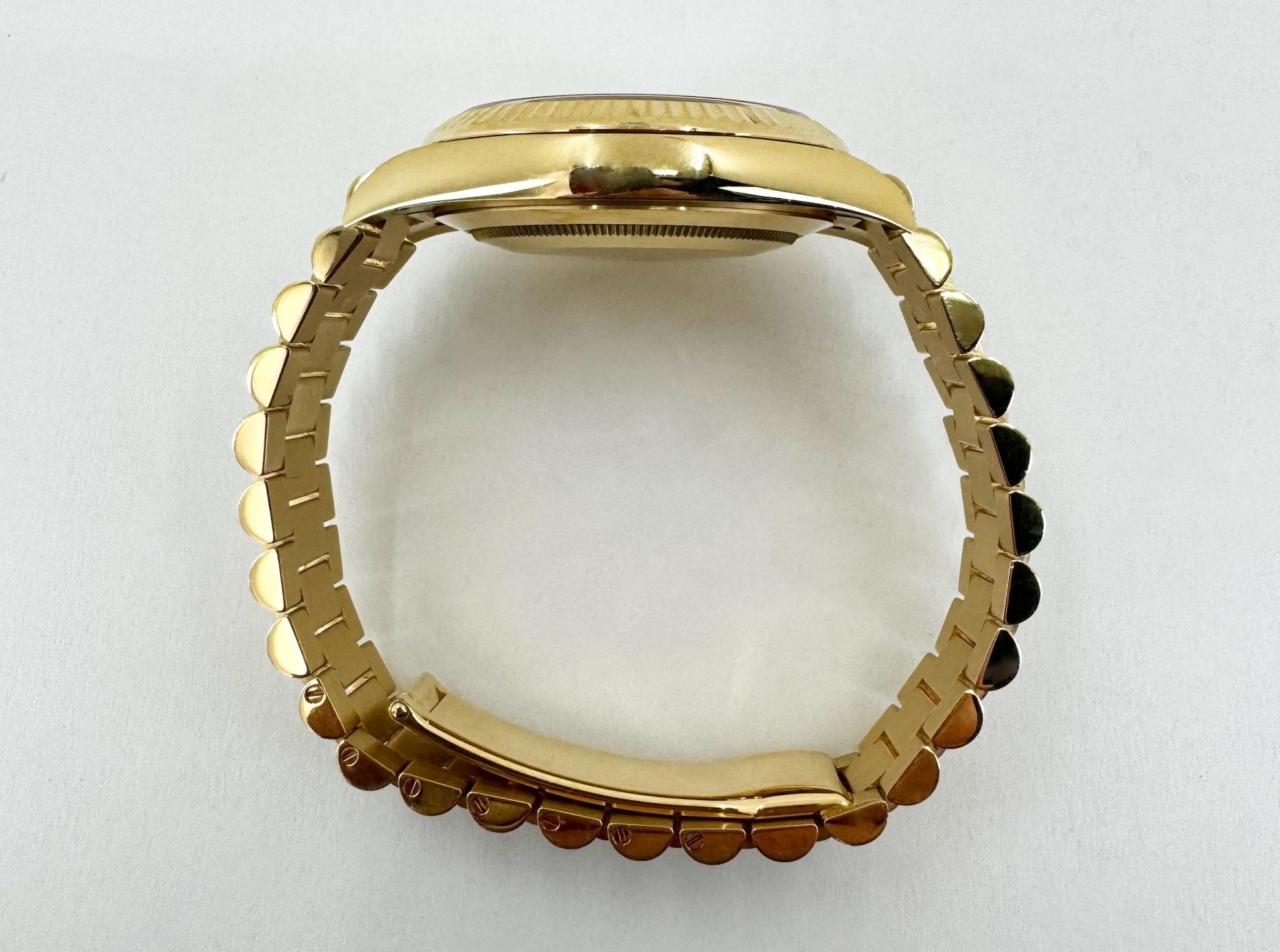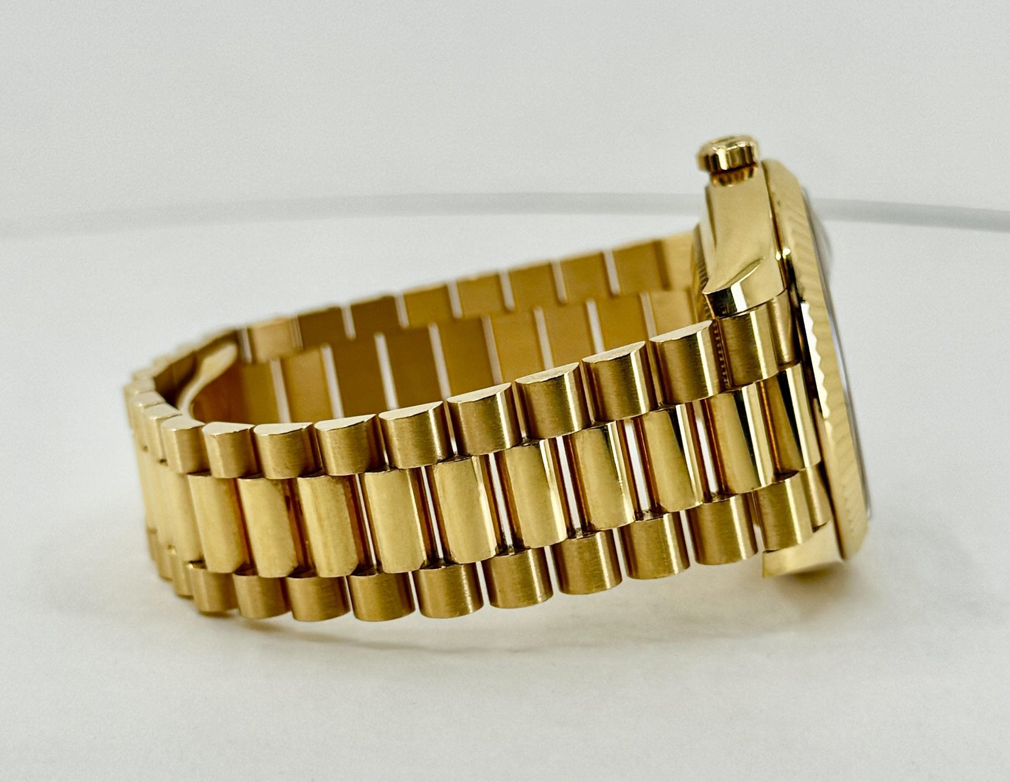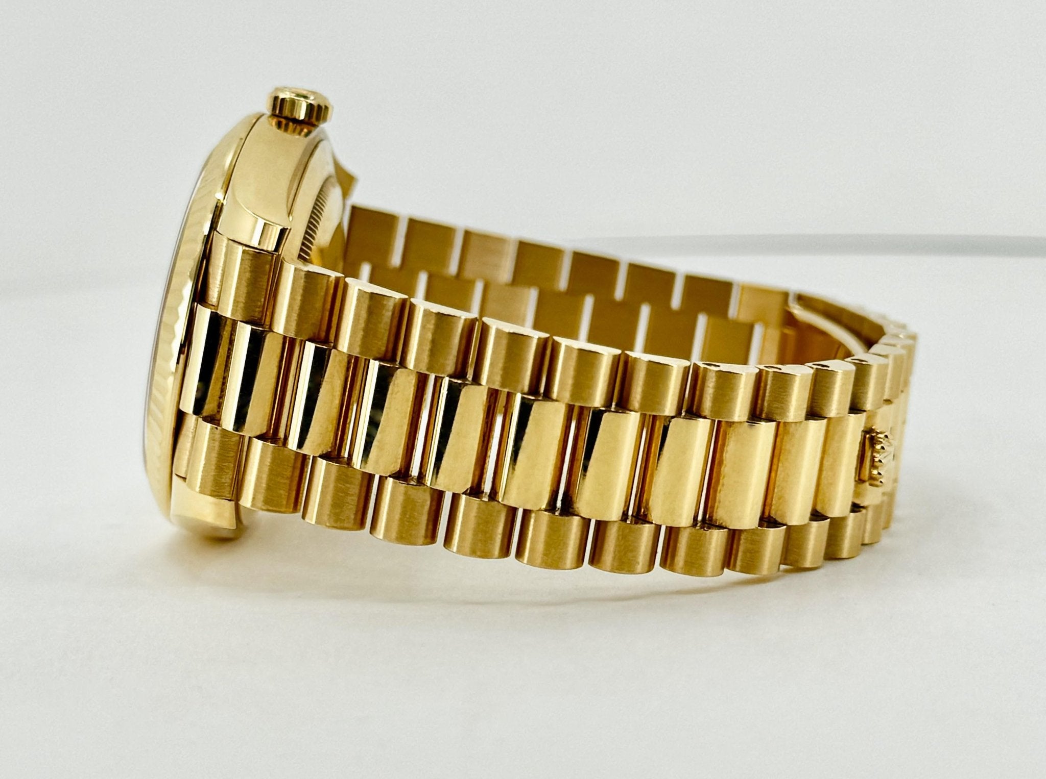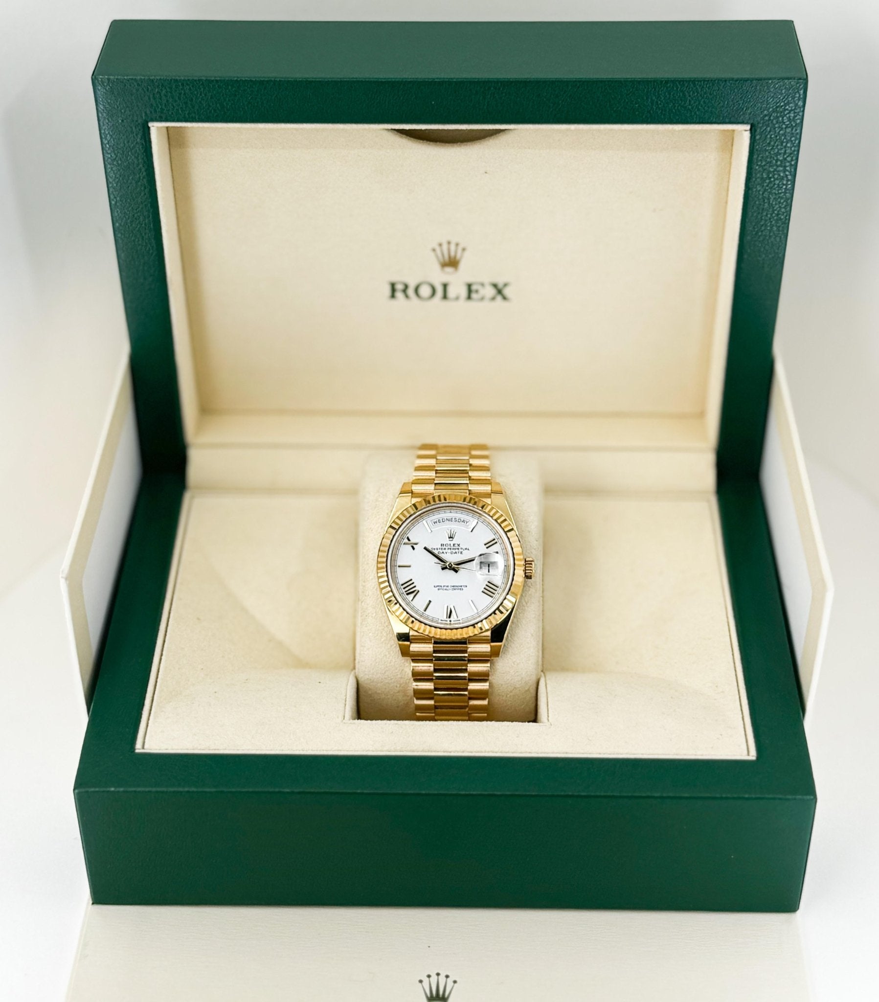 Rolex Day-Date 40 Yellow Gold White Roman Dial & Fluted Bezel President Bracelet 228238 –