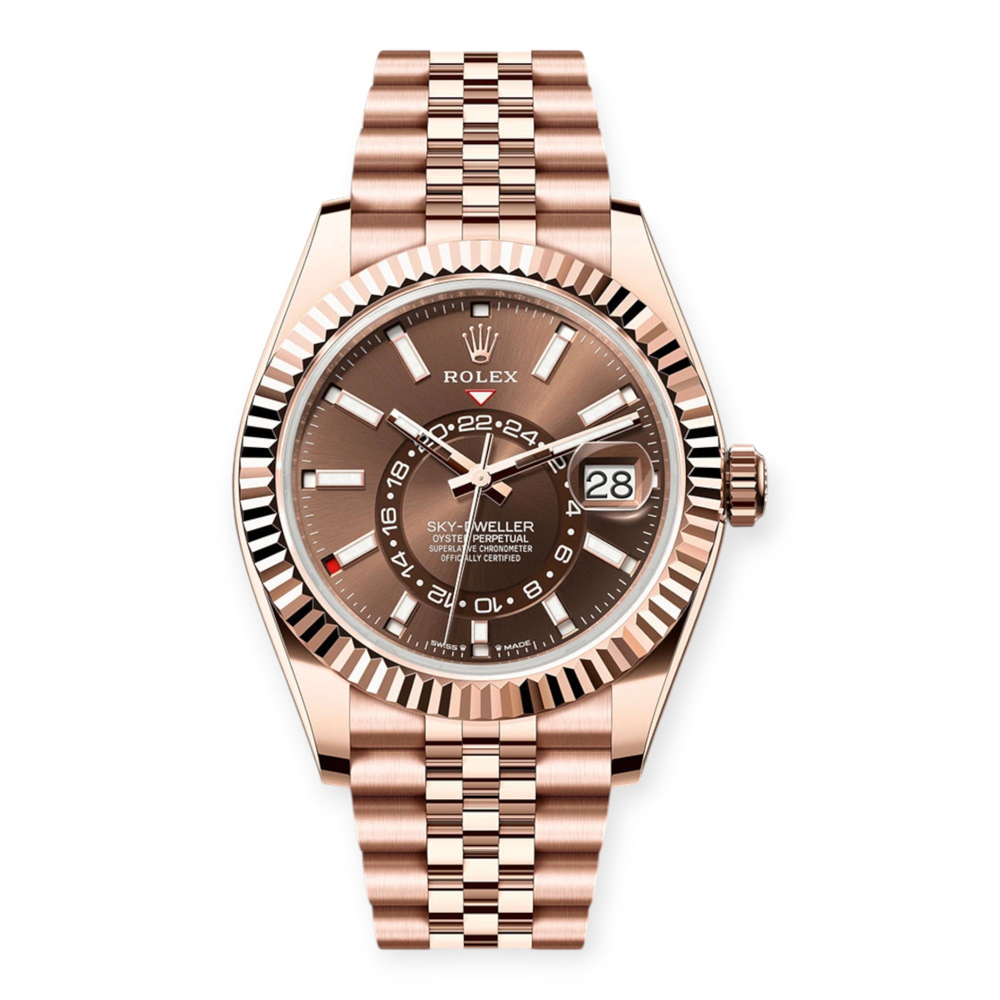Rolex Everose Gold Sky-Dweller 336935 Chocolate Index Dial On a Jubilee Bracelet