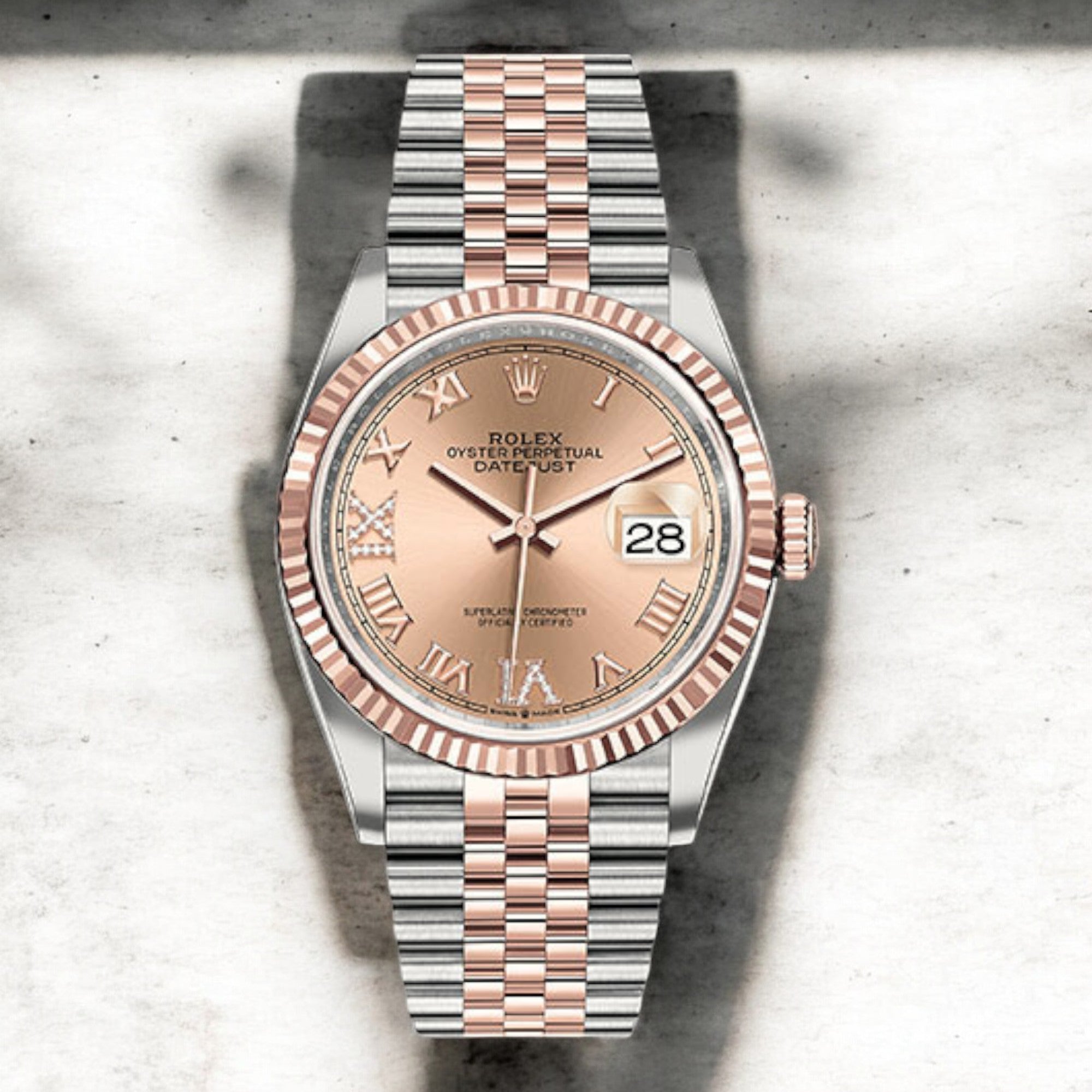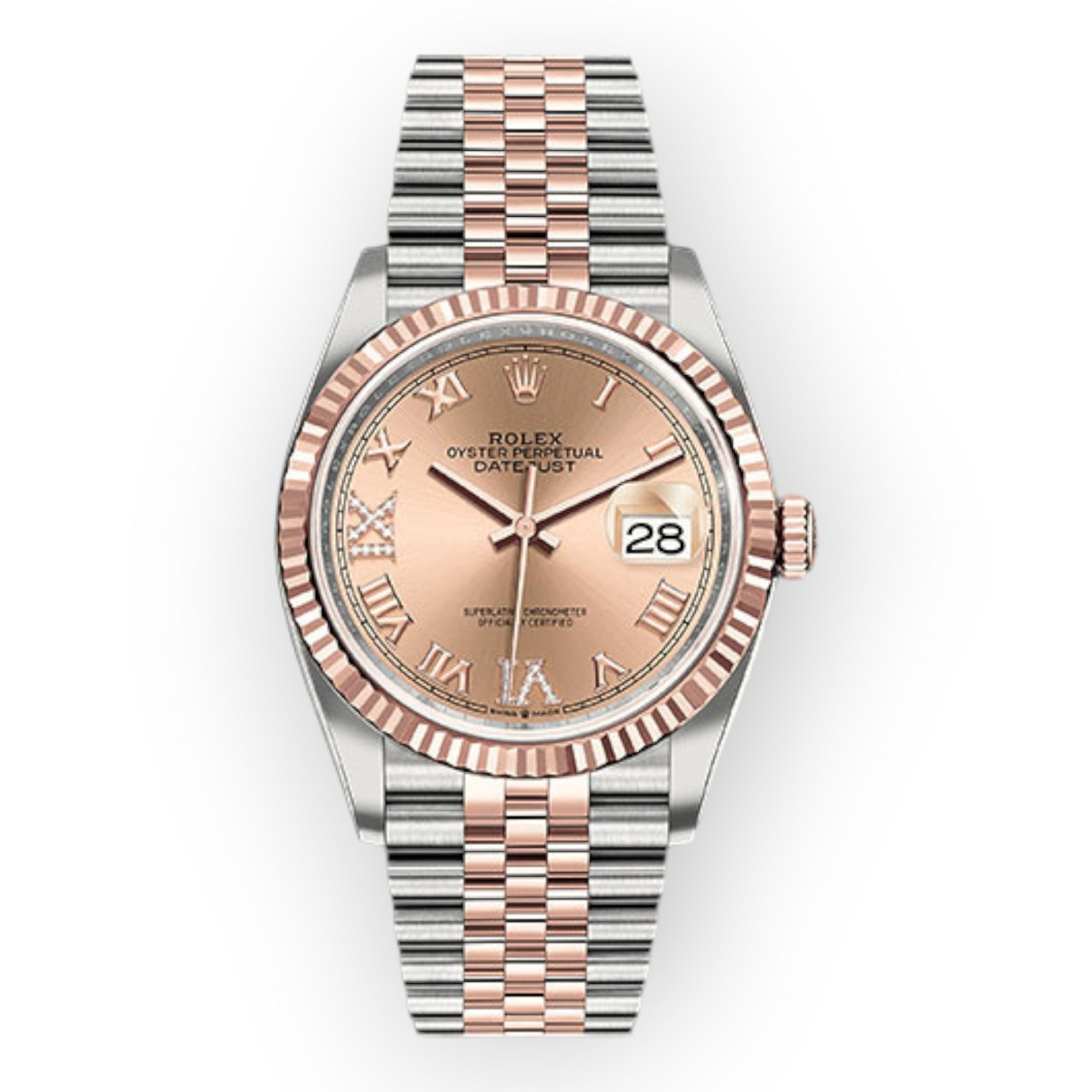 Rolex Steel and Everose Rolesor Datejust 36 Watch 126231 Rose Roman Dial – Jubilee Bracelet