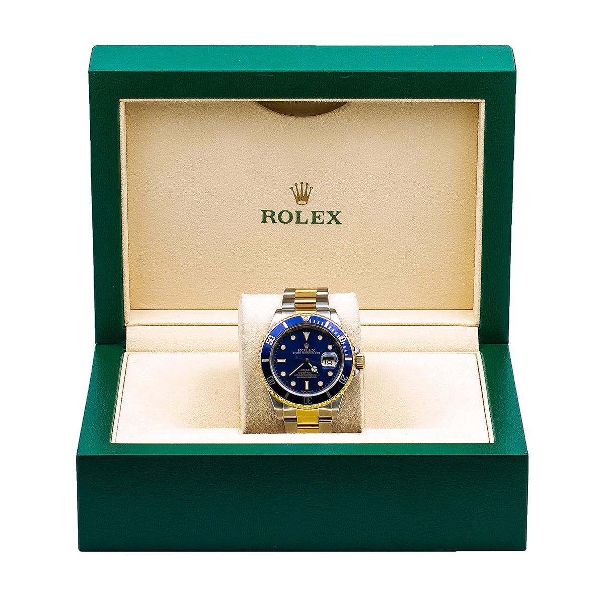 Rolex Submariner 40MM Two Tone Watch Blue Insert Bezel Blue Dial 16613