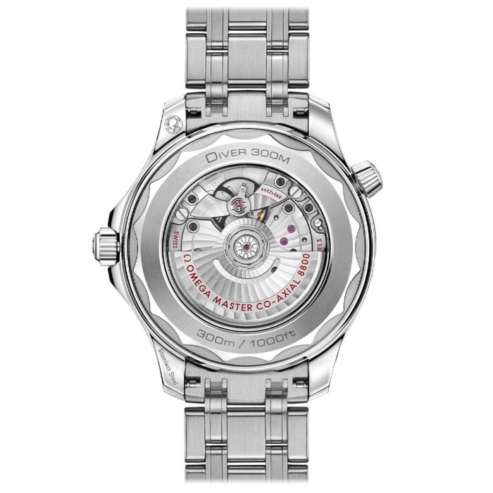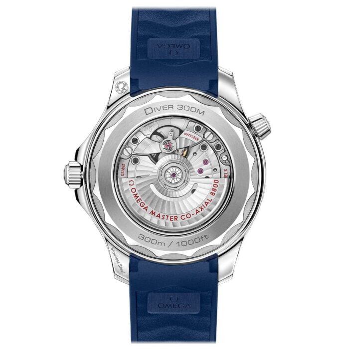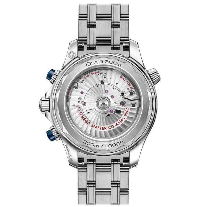 The OMEGA Seamaster Regatta is powered by an all-new multi-functional quartz chronograph movement, OMEGA’s calibre 5701, with thermo-compensated integrated circuit. Its special features include an inertial sensor unit, brightness sensor, and new LCD display function. A satin-finish rhodium-plated battery cover with red engraving gives the 5701 a unique finish.