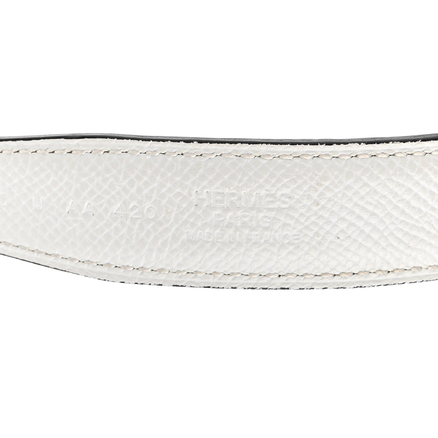 This is an authentic Swift Epsom 24mm Gamma Belt size 90 or 36 in White and Etoupe. This stylish belt is crafted in reversible swift calfskin leather in grey and white epsom leather on the other side. It also features a thin palladium Hermes H buckle.