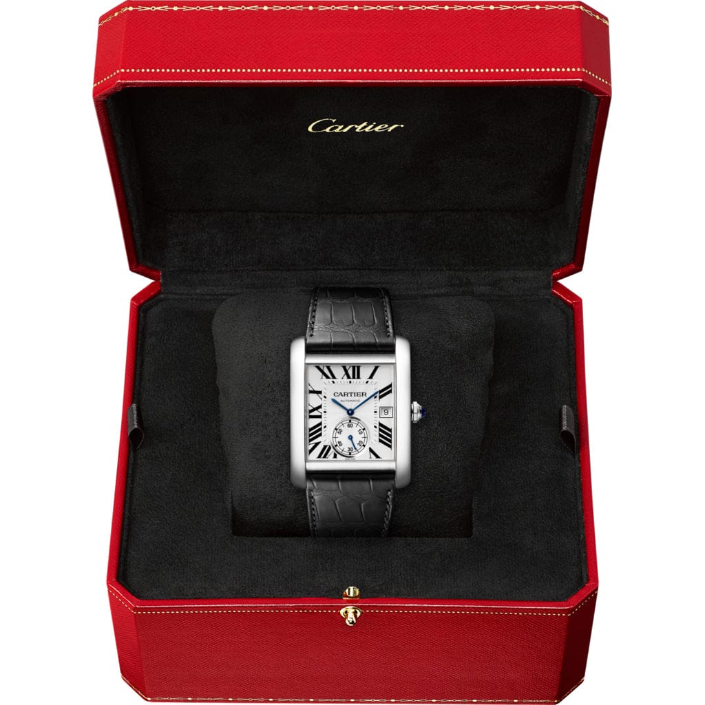 With the Tank MC watch, the Maison’s iconic design takes on a resolutely masculine edge. A larger case, inspired by strong square dimensions and a small seconds counter, gives this model power and elegance. The perfection of its 1904 MC automatic movement, designed by the Cartier Manufacture, is visible through the transparent sapphire case back.