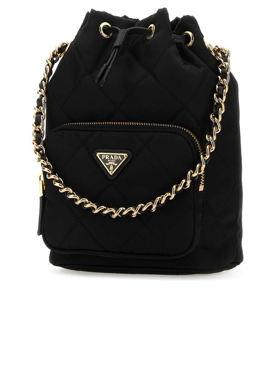 This PRADA bucket bag combines a modern form with traditional sophistication. It features a sturdy top handle for easy carrying and is constructed from durable Re-Nylon, exhibiting the brand’s innovative approach to sustainable fashion. The compact yet functional design makes it a versatile addition to your handbag collection.